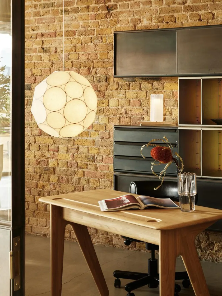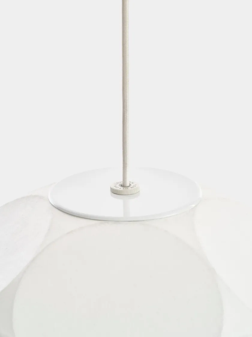 Soft pendlen fra Tom Dixon er et roligt og poetisk modspil til brandets metalliske ikoner. Den næsten kuglerunde skærm svæver let i rummet og spreder et varmt, diffust lys der klæder både spiseplads, stue og soveværelse. Formen er inspireret af himmellegemer og bygger på en svejset stålramme, der sprays ind i en kokonstruktur af TPU så lyset filtreres jævnt uden at blænde. I hvid får lampen et rent og moderne udtryk, som gør den nem at hænge alene eller i klynger for et mere skulpturelt greb. Soft leveres med hvid stofledning og tilhørende loftsmontering, og den E27 baserede lyskilde giver frihed til at vælge farvetemperatur, lysstyrke og dæmpning via en passende pære. Et underspillet designobjekt med stor visuel ro og høj hverdagsværdi.