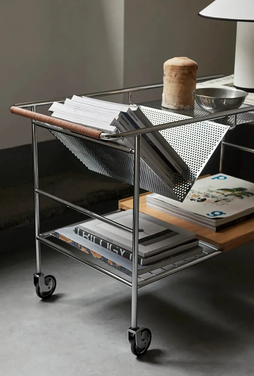 Alima er designet af Note Design Studio med ønsket om at skabe en opbevaringsenhed, der skulle rumme bøger, magasiner og mindre genstande. Den fine vogn kan fungere flere steder i hjemmet, både som barvogn eller til opbevaring af dine ynglings ting.