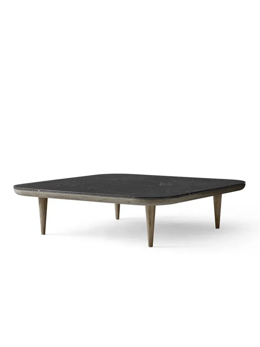 Det store Fly sofabord fra &Tradition er designet af Space Copenhagen. Det lave bord er lavet med en olieret egetræsbase lavet af massisvt egetræ – og egetræsfiner. Sofabordet har en marmorbordplade, der kan vælges i flere forskellige farver. Mål: Højde: 32 cm Dybde: 120 cm Længde: 120 cm Vægt: 92 kg. Model: SC11.