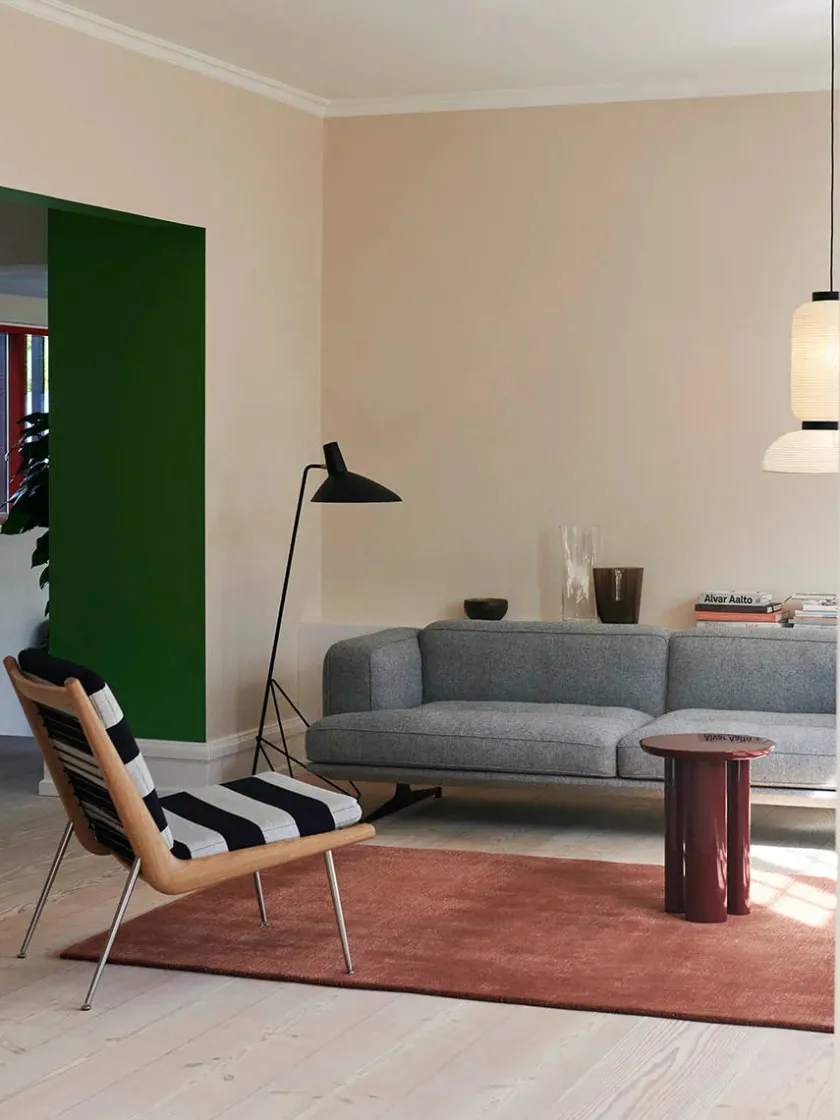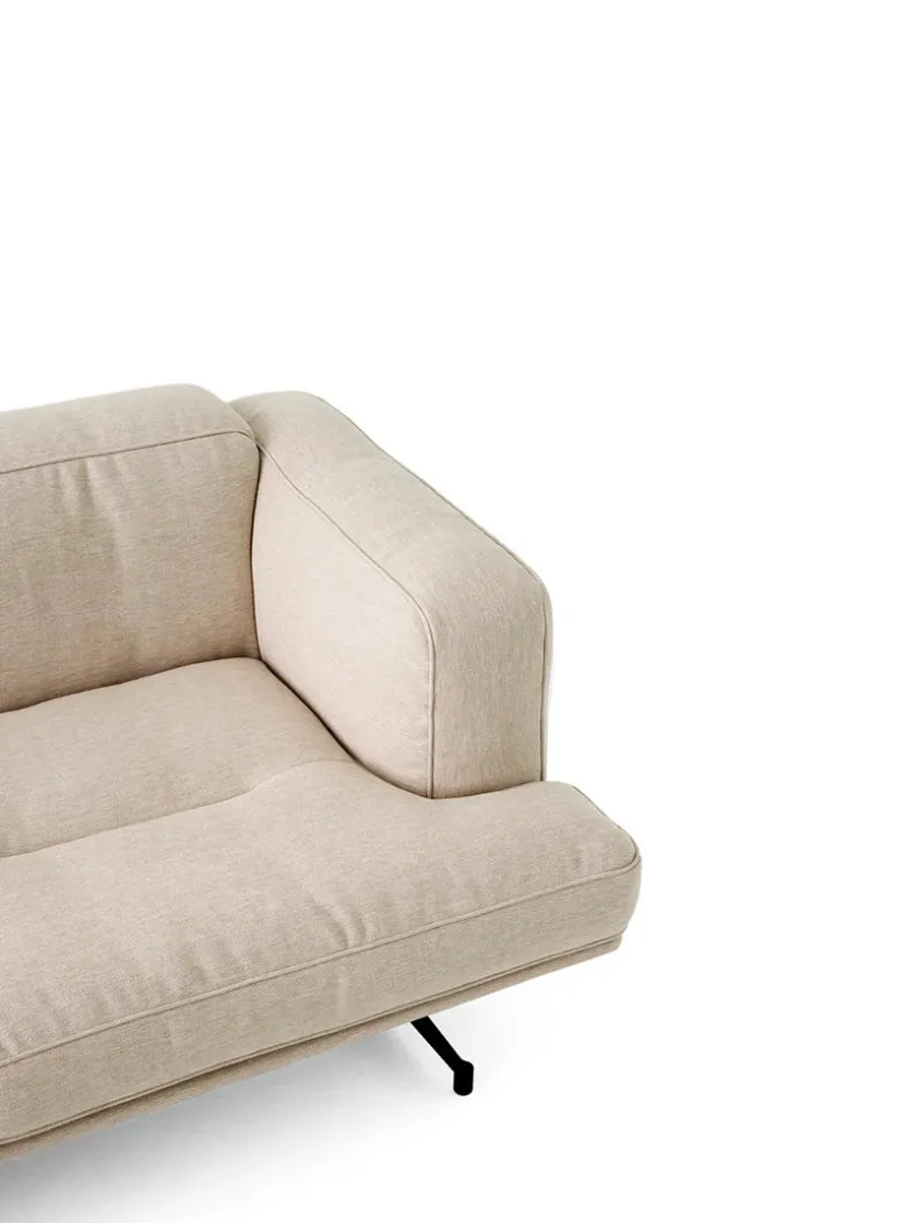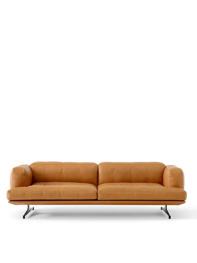 Inland sofaen er designet af Torbjørn Anderssen og Espen Voll med ønskede om at skabe en sofa, der vil give høj komfort med stadig med et smukt design. Inland AV23 er en dyb 3-personers sofa med høje arme og en sort stålfod, der får sofaen til at svæve.