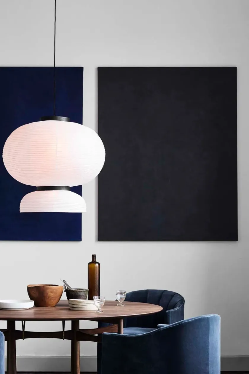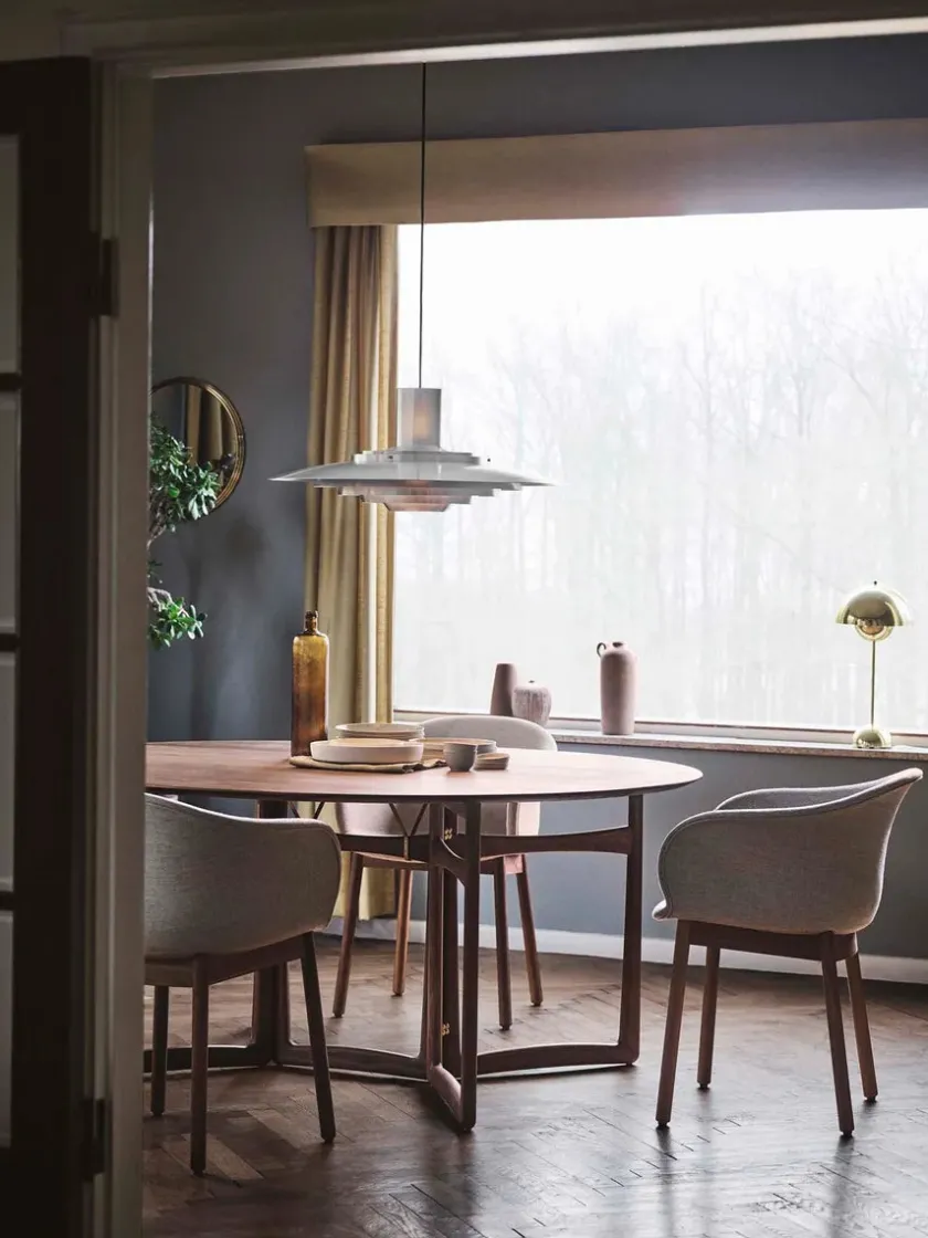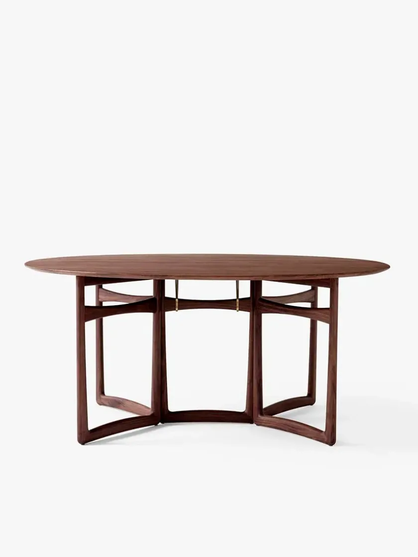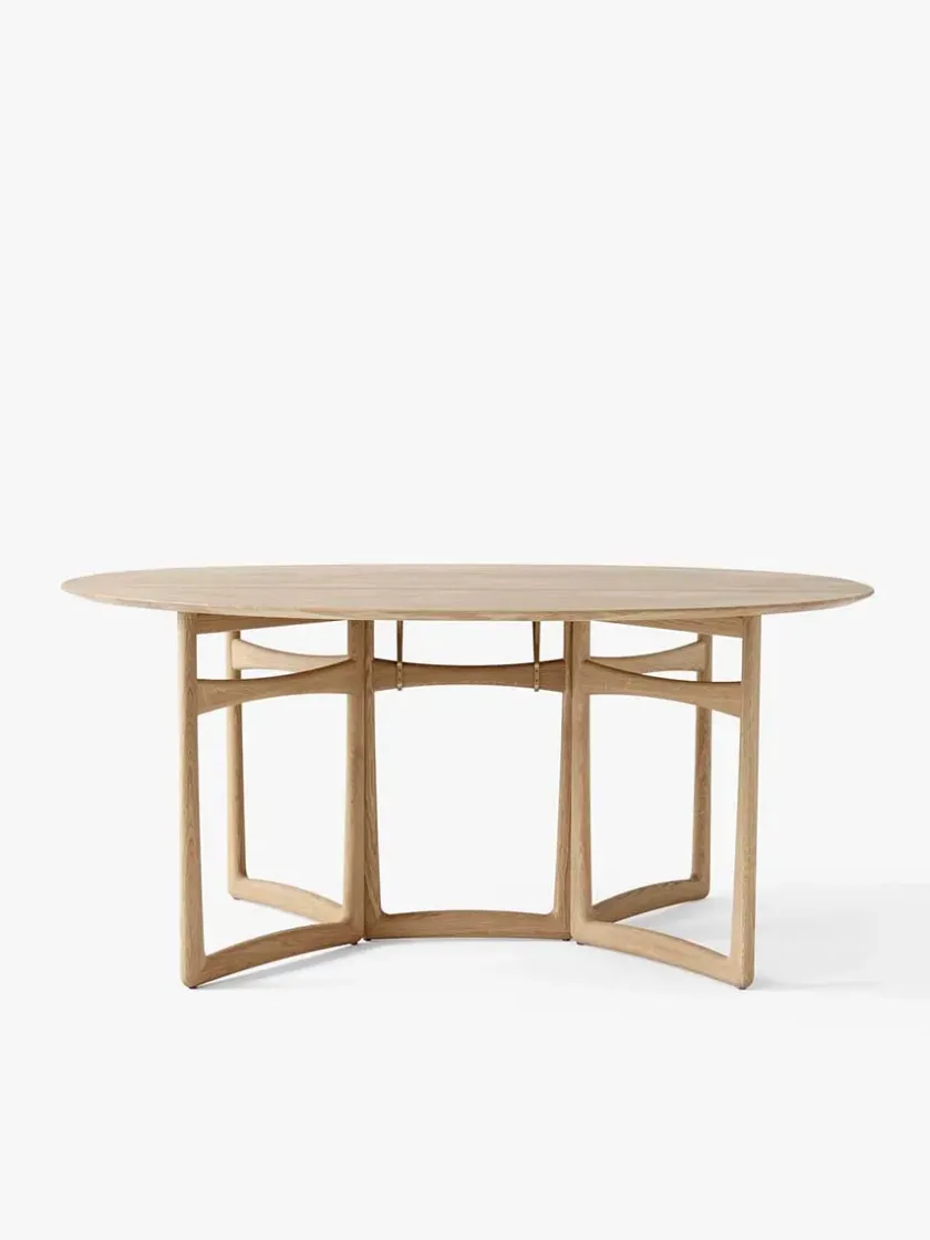 Drop Leaf spisebordet fra &Tradition er designet af Hvidt & Mølgaard i 1956. Bordet laves i hvidolieret egetræ eller olieret valnød. Smukt og praktisk spisebord, hvor begge sider af bordet kan foldes ned.