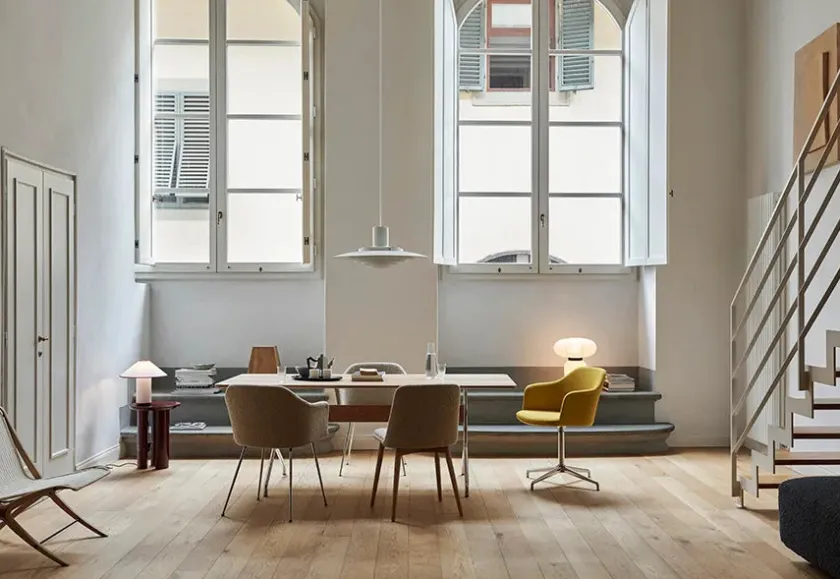 Pavilion AV19 bordet er ideelt til et kontormødelokale eller spisestuen. Bordet er designet af duoen Anderssen & Voll i 2020. Bordet laves i forskellige varianter af bordplade og stel.