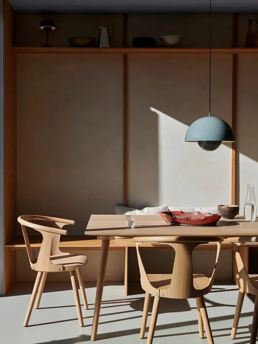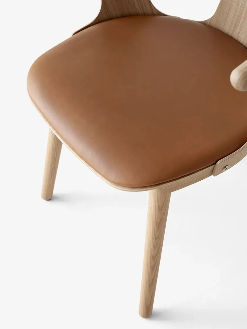 SK2 In Between fra &Tradition forener blød komfort med nordisk præcision. Den skulpturelle karm og de karakteristiske udskæringer giver stolen sit lette udtryk, mens det polstrede sæde inviterer til lange middage uden at gå på kompromis med støtte. Stolen er fremstillet i FSC certificeret træ og kombinerer traditionel drejning og formpresset finer med moderne finish i eg der passer ind i både klassiske og moderne spiseområder. Vælg mellem stof fra Kvadrat eller læder i en varm anilin kvalitet og oplev en stol der æstetisk samler rummet og funktionelt leverer dag efter dag.