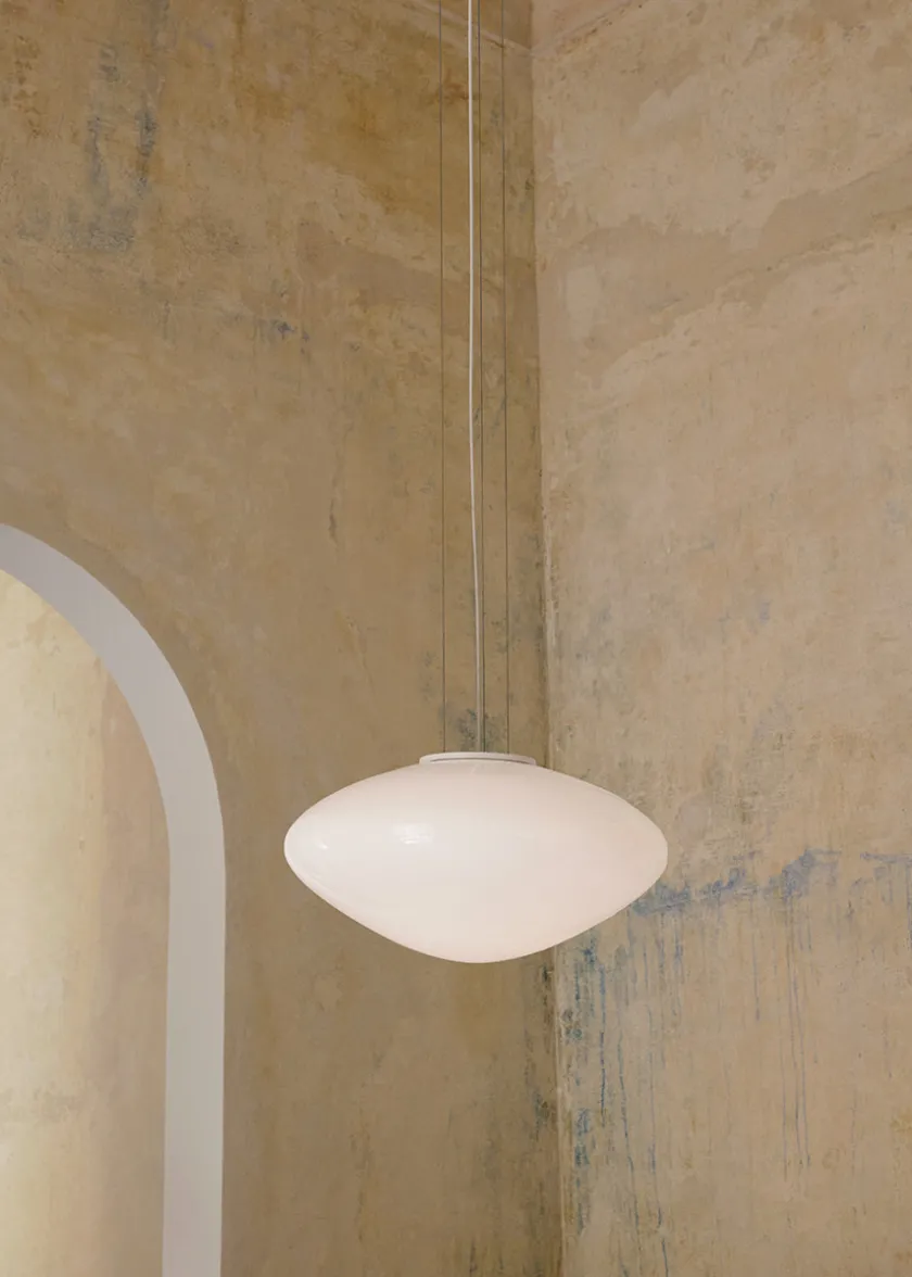 Mist AP20 er den største pendel i Mist-serien. Den er skabt med henblik på at fremstå markant og dekorativ i rummet, også når den hænger alene. Lyset filtreres blødt gennem det opalhvide glas og skaber en varm og indbydende stemning.