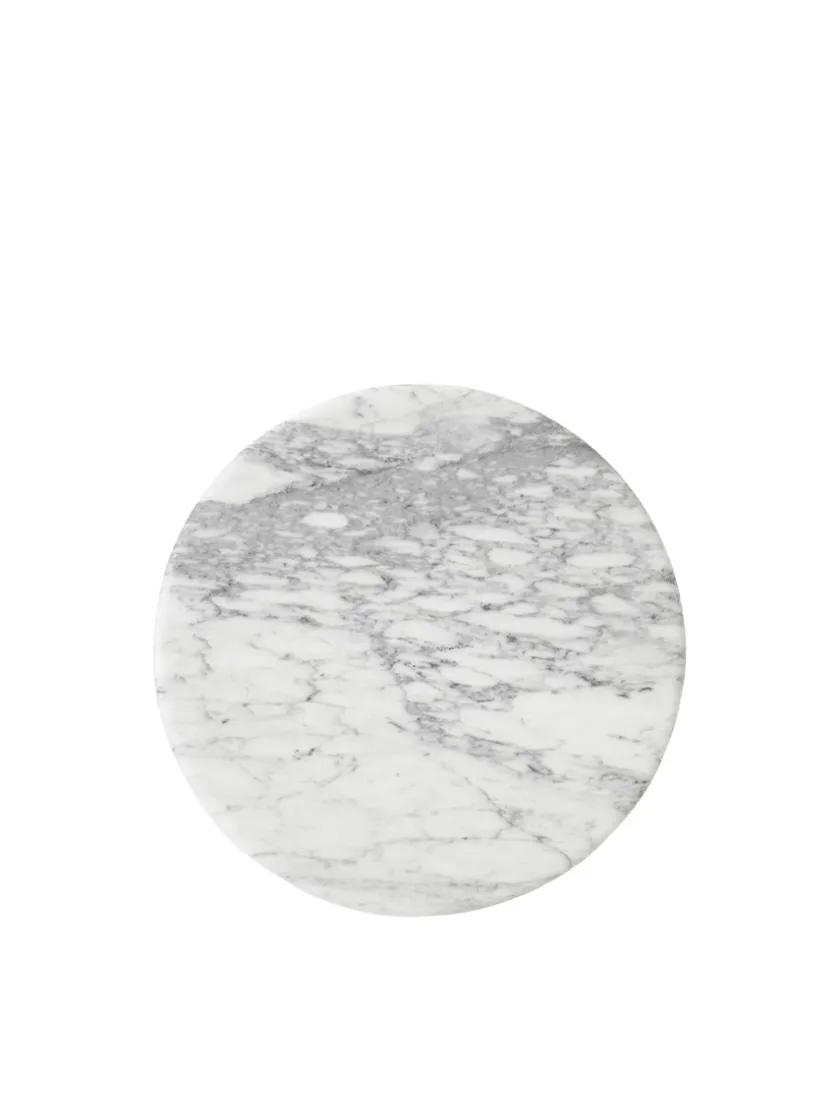 Marmorbordpladen er designet specifikt til Verner Pantons VP11 Wire Stool og forvandler skamlen til et stilfuldt og funktionelt sidebord. Pladen hviler let på stolens koncentriske ramme. Med sin glatte overflade i ægte marmor fungerer den som en praktisk overflade til bøger, drikkevarer eller dekorative genstande.