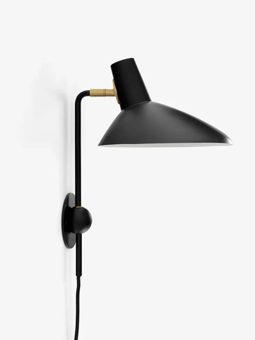 HM12 Væglampen er inspireret af skitser af den originale lampe af Hvidt & Mølgaard, hvor Tripod-væglampen forbliver tro mod det ikoniske Tripod design. Ligesom de andre lamper i Tripod kollektionen, så er væglampen fremstillet af lakeret aluminium med messing detaljer. Væglampen kan bruges flere steder i hjemmet, da skærmen har en drejefunktion.