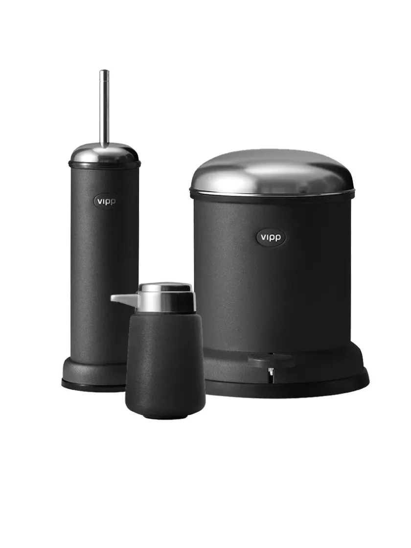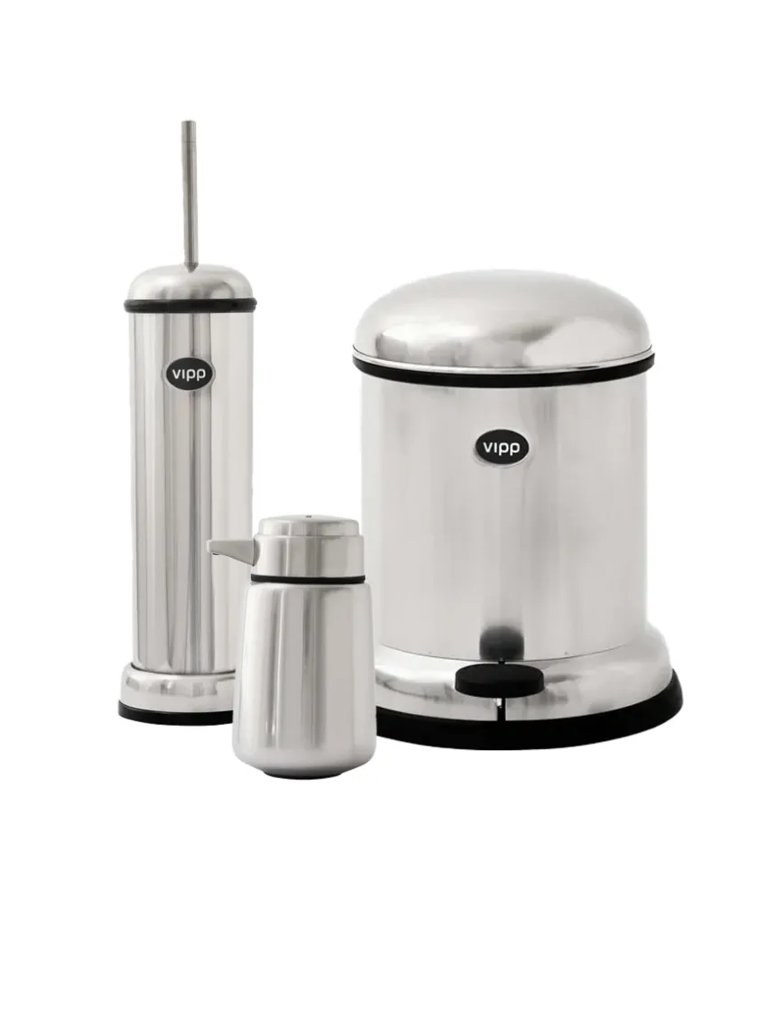 Giv dit badeværelse et stilfuldt løft og opgrader det med dette attraktive Vipp-sæt, der indeholder tre af mærkets mest populære og funktionelle produkter i elegant rustfrit stål. Uanset om du ønsker at erstatte en gammel toiletspand, toiletbørste eller sæbedispenser, vil dette sæt sikre, at dit badeværelse får et tidløst og moderne look.