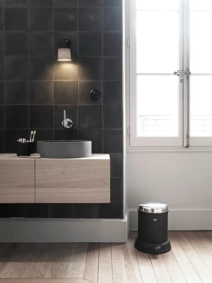 Stainless Steel Collection Nu er de klassiske VIPP spande produceret uden pulverlakering. Det rå, polerede stål tilfører et autentisk look til de smukke og super funktionelle spande. Tilfør tidløse materialer og fantastisk design til dit badeværelse, køkken eller kontor. VIPPs spande er et must i ethvert hjem. Vipp13 pedalspanden er en af de mindre Vipp pedalspande og er ideel til små badeværelser. Denne pedalspand rummer 4 liter og er udstyret med en udtagelig inderspand, et låg der sikrer lufttæt tillukning og en dæmpemekanisme, der lukker spandens låg i en blød bevægelse. En gummiring i bunden beskytter gulvet. Design: Holger Nielsen, 1939 Model: VIPP13 Mål: Ø 24,8 x H 30,2 x D 30 cm (Ø målt ved gulvet). Materiale: Rustfrit stål, silikone Volume: 4 liter