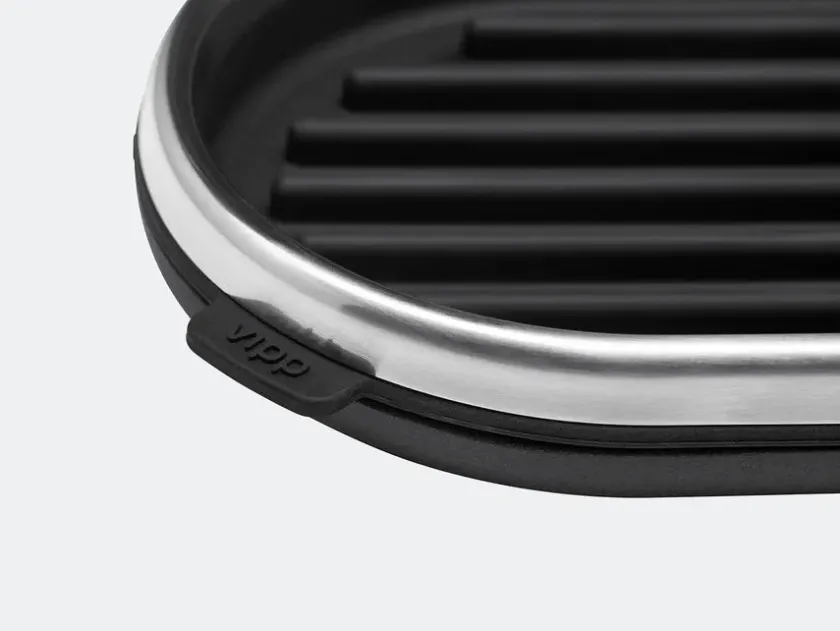 Vipp sæbeskålen er en let løsning til opbevaring af sæbe på badeværelset.