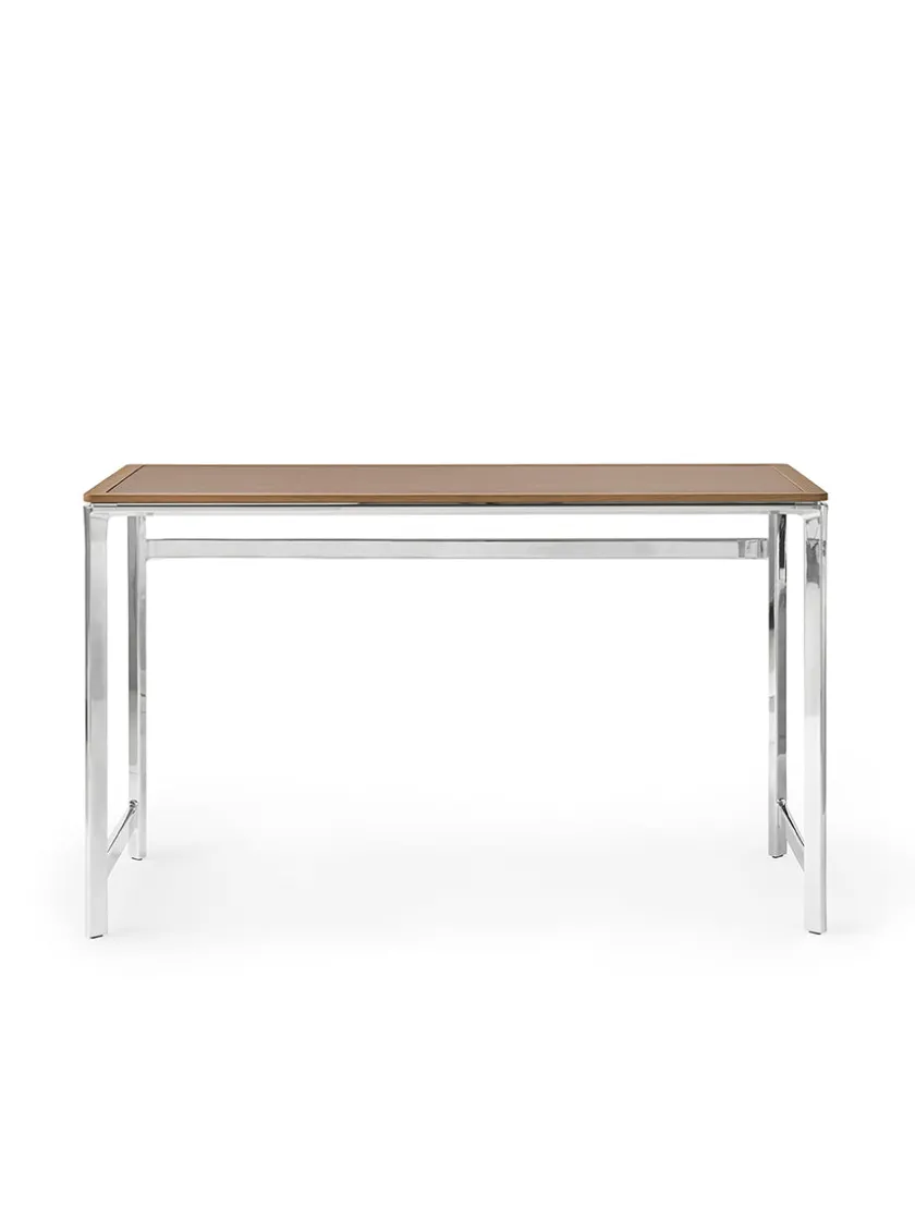 Smukt, enkelt og stilrent skrivebord fra Vipp. Studio Desk kommer med stel i rå aluminium og bordplade i lækkert Camel læder, der er indrammet af lys egetræ. Den rå læder står enormt flot til rammen i det sølv aluminium, og de to kontraster komplimenterer hinanden perfekt. Vipp Studio Desk er til dig, der ønsker et stilet hjemmekontor med enkle rammer, der ikke larmer for meget. Sæt Studio Desk sammen med Vipps populære Swivel Chair for et gennemført look. Hver eneste bordplade vil være unik, og der kan forekomme små “uperfektheder” i læderet, som blot er en del af bordets unikke design.