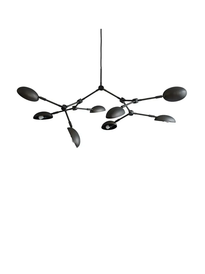 Smuk og elegant lysekrone fra 101 Copenhagen. Drop lysekrone mini i bronze har et strukturelt design med bløde organiske former, og hylder moderne lampedesigns fra 1950’erne. Den iøjnefaldende og smukke lysekrone vil klæde ethvert rum. Den elegante lampe har et fleksibelt design med 14 justerbare arme og 8 drejelige lampehoveder. Hermed har du mulighed for at skabe dit eget unikke udtryk. Med Drop lysekrone mini skiller du dig ud fra mængden, og lampen skaber en imponerende visuel effekt med sin varme og behagelige belysning. Drop lysekrone mini er smuk alene, men kan også kombineres med flere af mini lysekronerne. Lysekronen er egnet til rum med højde på 230 – 320 cm. Drop lysekrone mini kommer i fire farver, herunder brass, bronze, burned black og oxidized. Lysekronen findes også i en større version, nemlig Drop lysekrone.