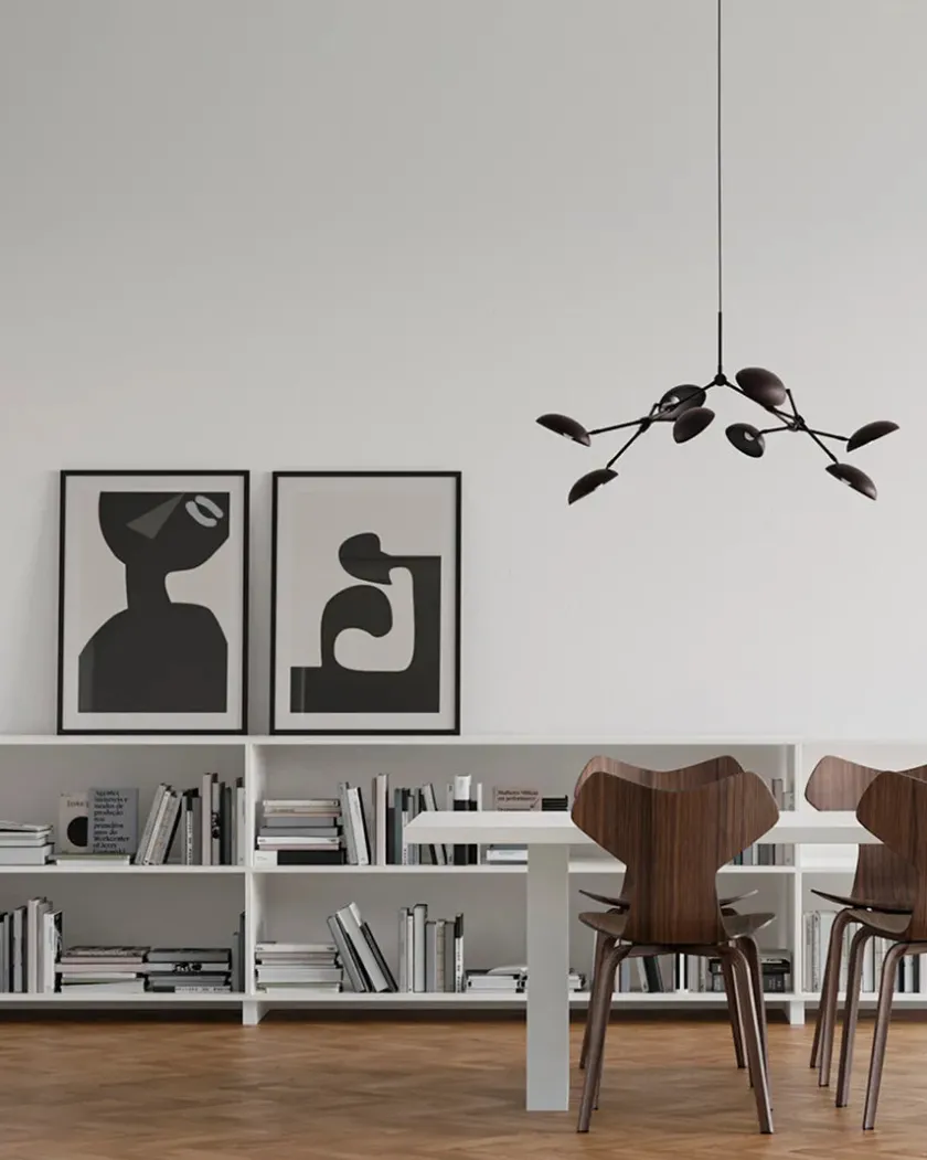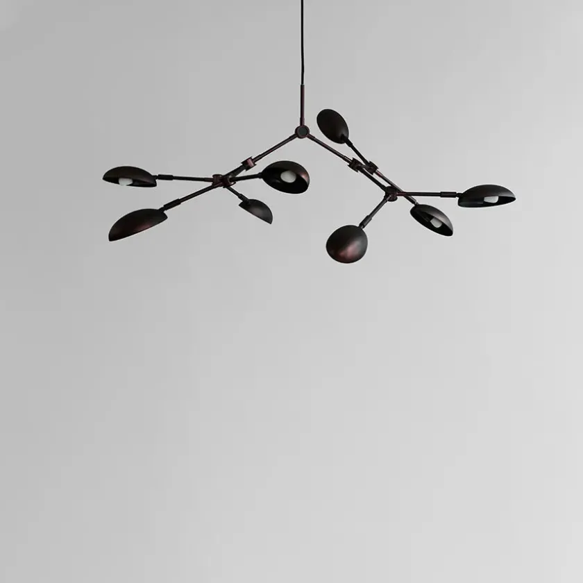 Smuk og elegant lysekrone fra 101 Copenhagen. Drop lysekrone mini i burned black har et strukturelt design med bløde organiske former, og hylder moderne lampedesigns fra 1950’erne. Den iøjnefaldende og smukke lysekrone vil klæde ethvert rum. Den elegante lampe har et fleksibelt design med 14 justerbare arme og 8 drejelige lampehoveder. Hermed har du mulighed for at skabe dit eget unikke udtryk. Med Drop lysekrone mini skiller du dig ud fra mængden, og lampen skaber en imponerende visuel effekt med sin varme og behagelige belysning. Drop lysekrone mini er smuk alene, men kan også kombineres med flere af mini lysekronerne. Lysekronen er egnet til rum med højde på 230 – 320 cm. Drop lysekrone mini kommer i fire farver, herunder brass, bronze, burned black og oxidized. Lysekronen findes også i en større version, nemlig Drop lysekrone.