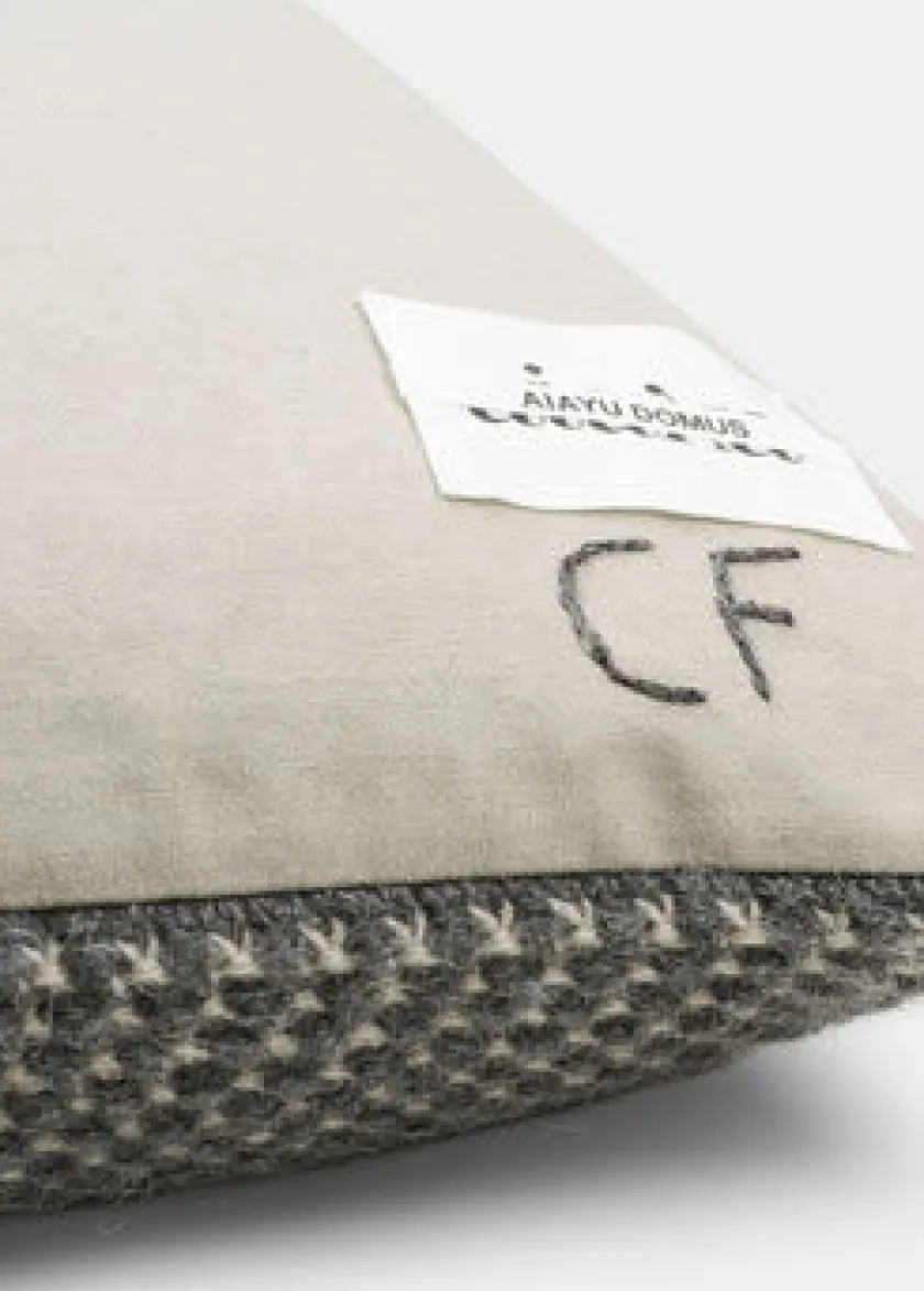 Den ikoniske Heather-pude fra Aiayu løfter rummet med sin rolige, taktile luksus. Forsiden er håndstrikket i den blødeste baby-lamauld med den karakteristiske perlestrik, som giver en smuk, levende struktur. Bagsiden er i slidstærk canvas med skjult lynlås for et rent udtryk, og hver pude bærer de håndskrevne initialer fra den kvinde i det bolivianske højland, som har strikket netop dit eksemplar – et lille stykke ægte håndværk til hjemmet. Heather er lige smuk alene som statement på sengen som i en harmonisk gruppe i sofaen, og de afdæmpede Aiayu-farver gør den let at matche på tværs af tekstiler. Inderpude medfølger, så du kan lægge den direkte ind i indretningen og nyde den varme, bløde kvalitet fra første dag.