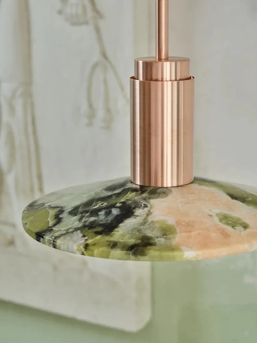 Nu fås Donya lampen fra Anour med skønne skærme i sten. Lampeskærmen her er i hvid Onyx. Onyx er en natursten, som er fyldt med harmoni og i skønne farver. Den hvide skærm kommer med, hvad der ligner revner, som giver et skønt og diffust lys. Donya lampen er ideel at bruge over køkkenbordet eller til at sætte sammen flere og så hænge over spisebordet. Da skærmen er i natursten, vil hver eneste Donya ONYX Solar lampe være unik og helt sin egen. Donya lampefatningen kommer i mange forskellige finishes og materialer.