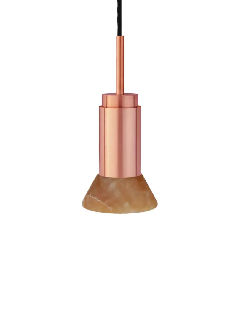 Nu fås Donya lampen fra Anour med skønne skærme i sten. Lampeskærmen her er i ravfarvet Onyx og trapezformet. Onyx er en natursten, som er fyldt med harmoni og i skønne farver. Den gule/orange skærm kommer med, hvad der ligner revner, som giver et skønt og diffust lys. Donya lampen er ideel at bruge over køkkenbordet eller til at sætte sammen flere og så hænge over spisebordet. Da skærmen er i natursten, vil hver eneste Donya ONYX Cylinder lampe være unik og helt sin egen. Donya lampefatningen kommer i mange forskellige finishes og materialer.