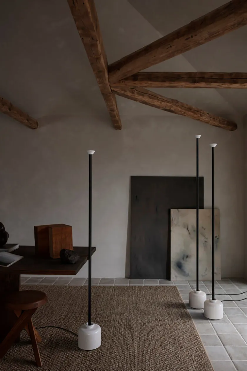 Model 1095 forener diskret elegance med innovativ belysning. Designet af Gino Sarfatti i 1968 og genudgivet af Astep, fremstår gulvlampen med en raffineret lethed i det slanke aluminiumsrør, mens den lille reflekterende skærm i hvidmalet aluminium spreder et indirekte og stemningsfuldt lys.