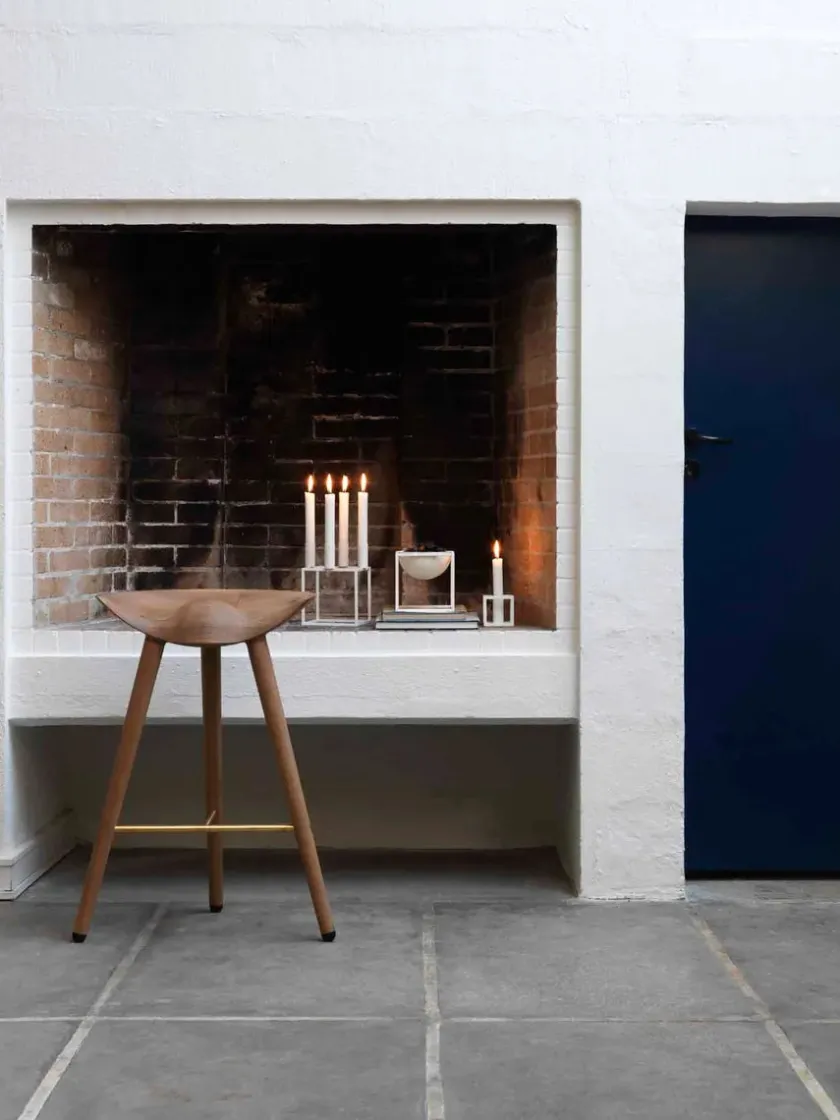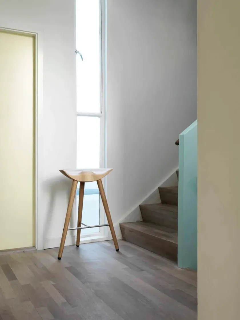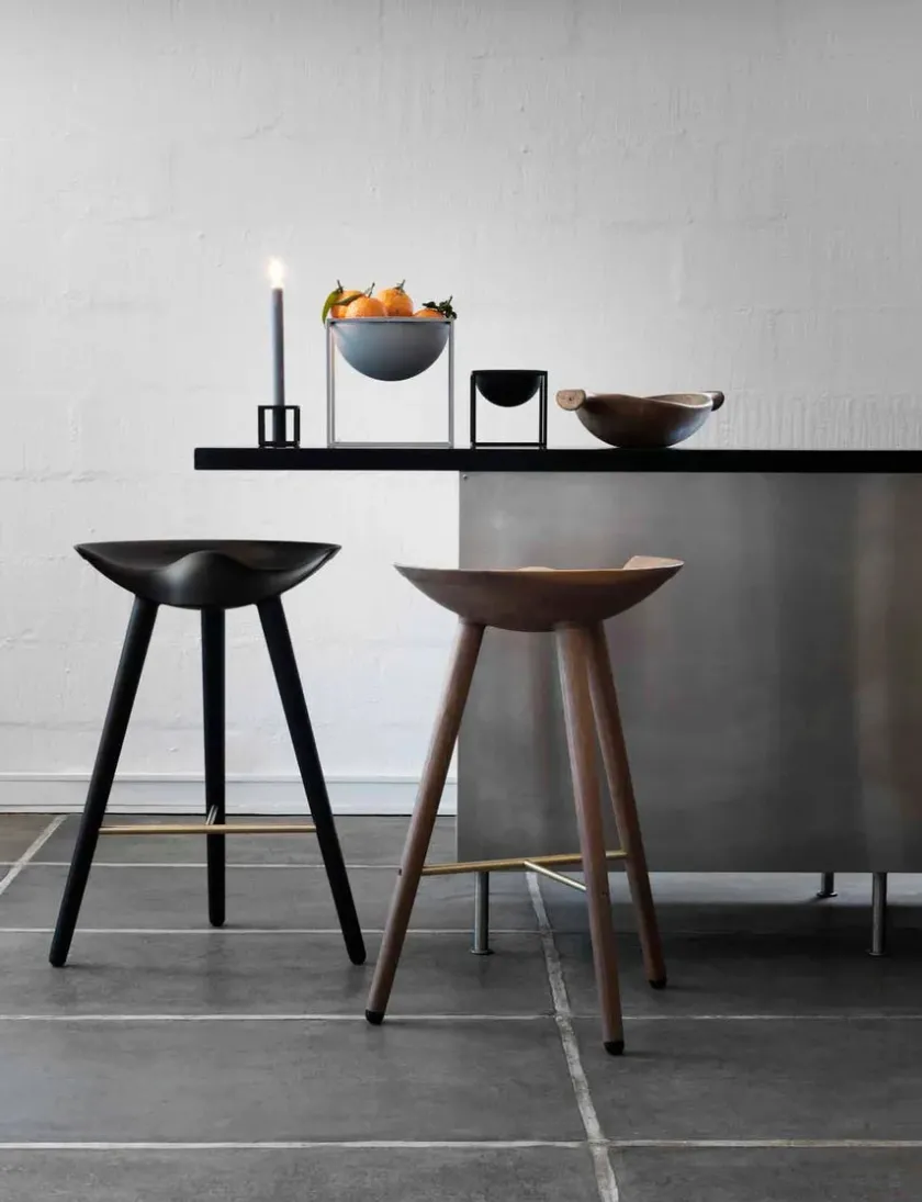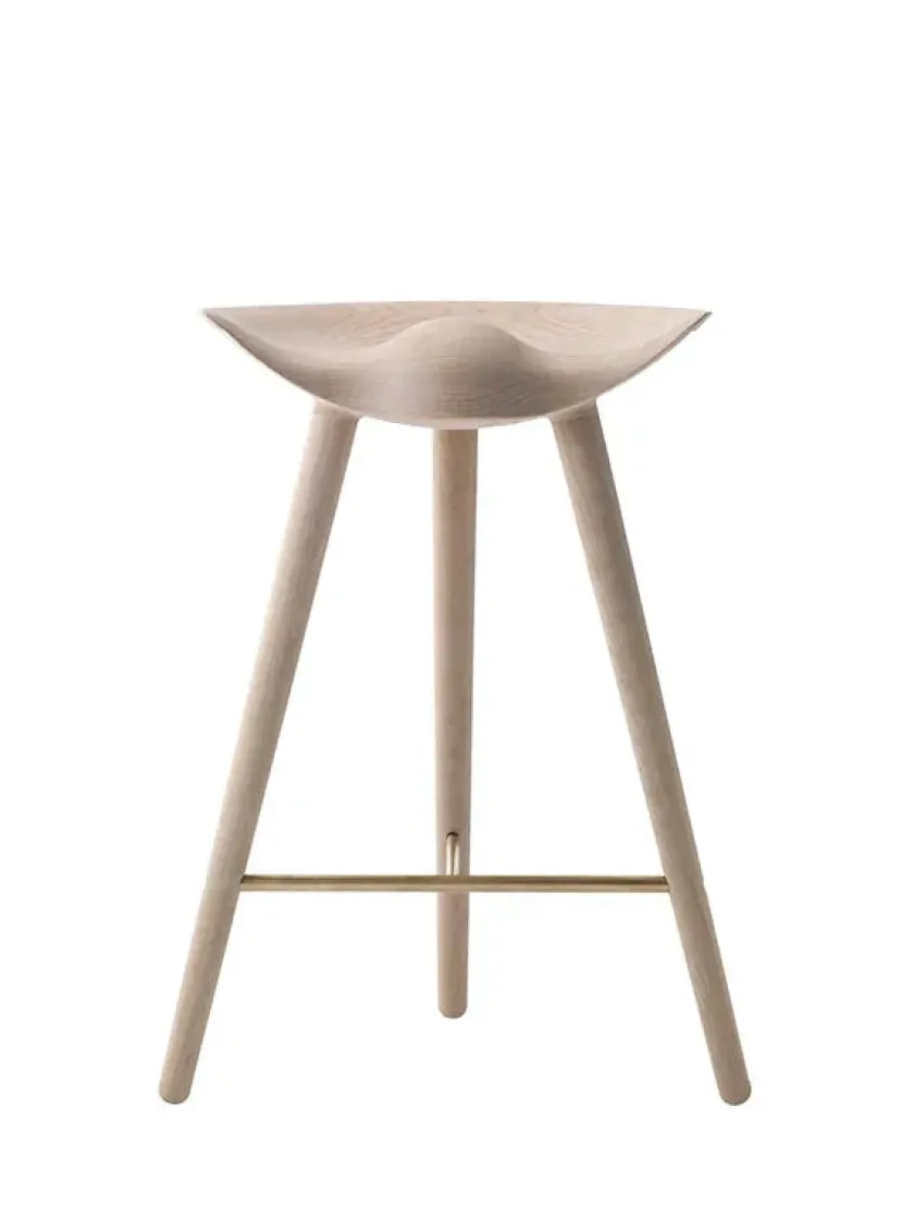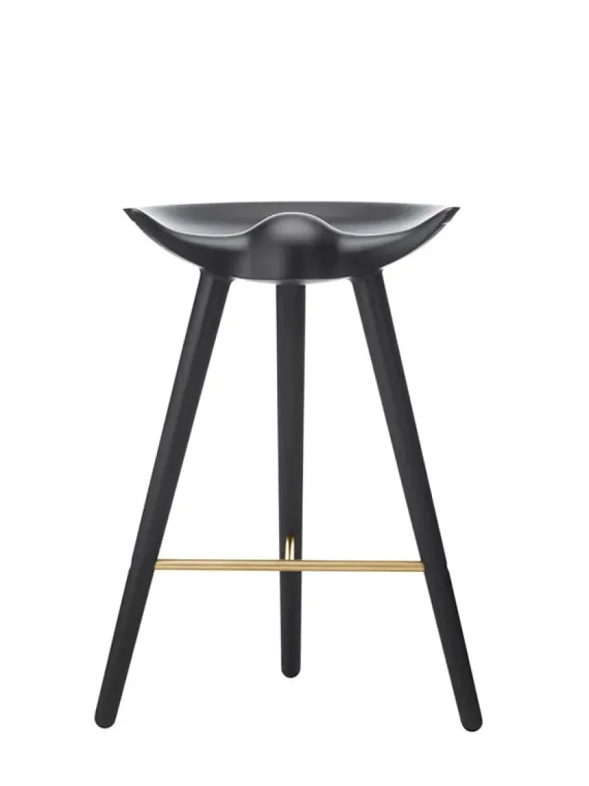 Den lave barstol fra Audo Copenhagen. ML42 er designet af Mogens Lassen i 1942 og kan vælges i tre udgaver, men mulighed for at vælge foden, i stål, messing eller kobber. Materialer: – Sortbejdset bøg – Egetræ – Brun olieret egetræ Barstolen findes også i en højde på Mål: Højde: 73 cm Sædehøjde: 69 cm Sædebredde: 46,5 cm Ben bredde: 55,5 cm