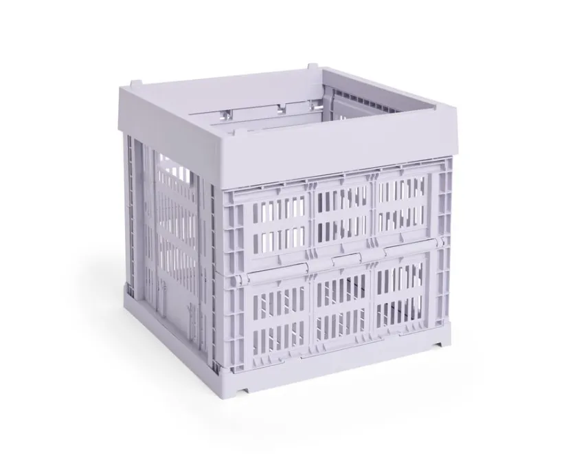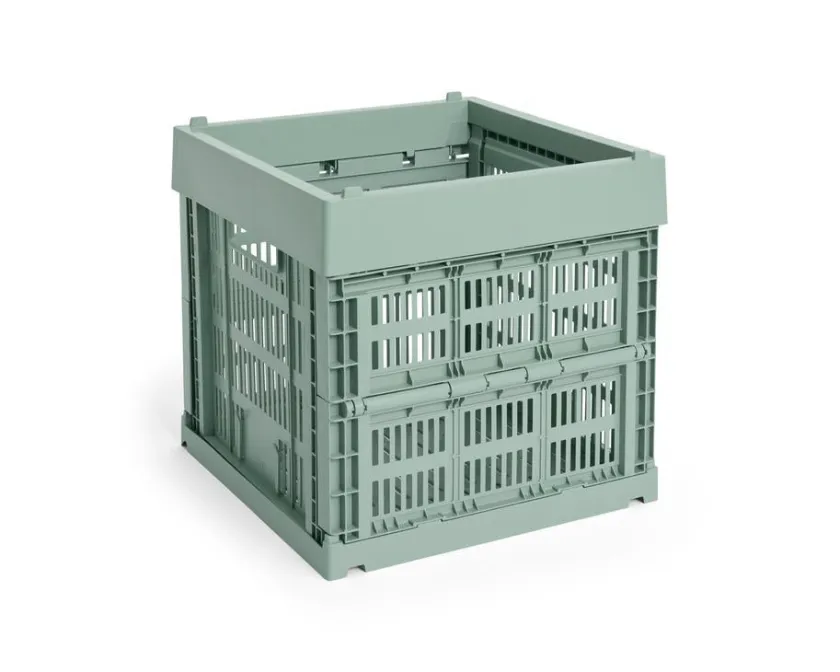 Inspirér dine rum med HAY Colour Crate Cube i den rolige, naturinspirerede nuance Sage Green – en multifunktionel kubisk opbevaringsløsning, der både taler til æstetik og funktionalitet. Uanset om det er i stuen, køkkenet, kontoret eller børneværelset, bringer denne crate orden på en stilfuld måde. Dens perforerede mønster giver luft og struktur, mens den lette konstruktion gør den fleksibel og nem at håndtere. Når den ikke er i brug, kan den foldes fladt for minimal pladsoptagelse – og når du har brug for opbevaring, kan den stables på kryds og tværs med andre crates fra HAY Colour Crate-serien, hvilket åbner op for kreative og personlige opbevaringsløsninger.
