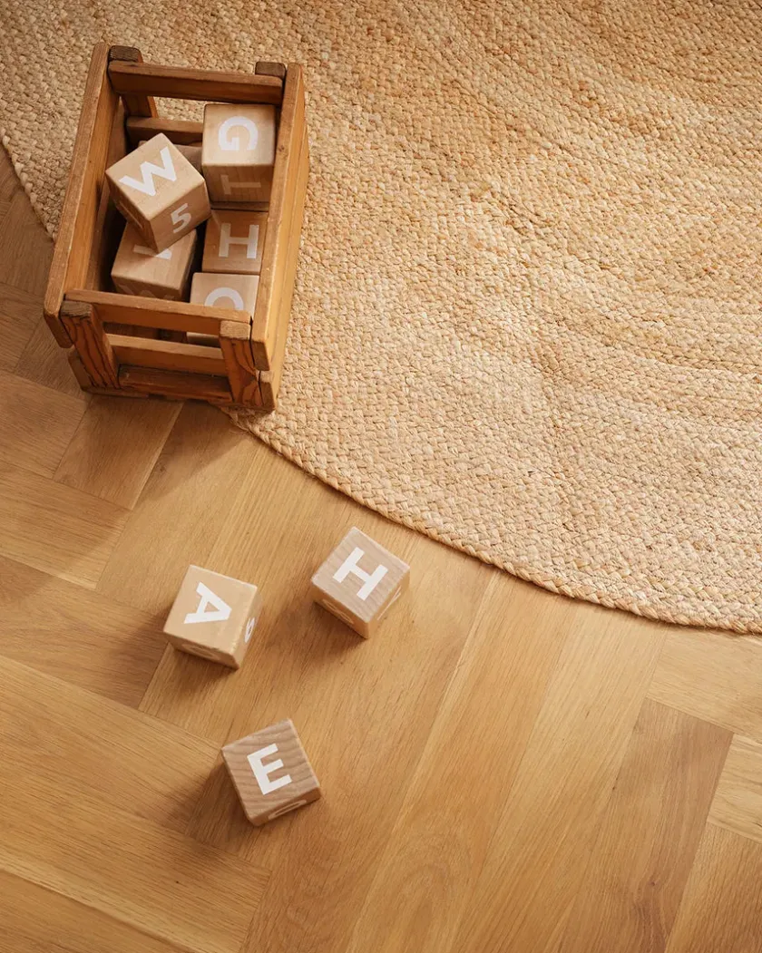 Skab et hyggeligt og indbydende rum med dette runde jutetæppe, der er det perfekt supplement til slyngevuggen eller vuggen. Tæppet tilføjer en varm og naturlig stemning til både børneværelset og stuen. Fremstillet af 100% bionedbrydelig jute, er det både holdbart og modstandsdygtigt over for daglig brug, hvilket sikrer, at det holder i mange år.