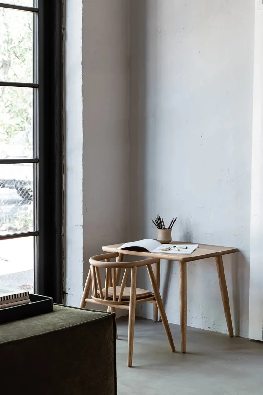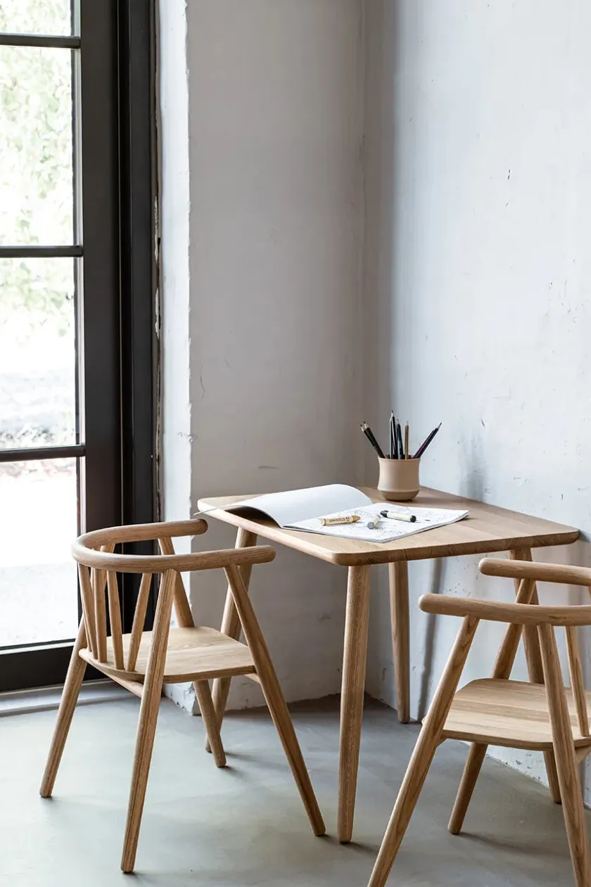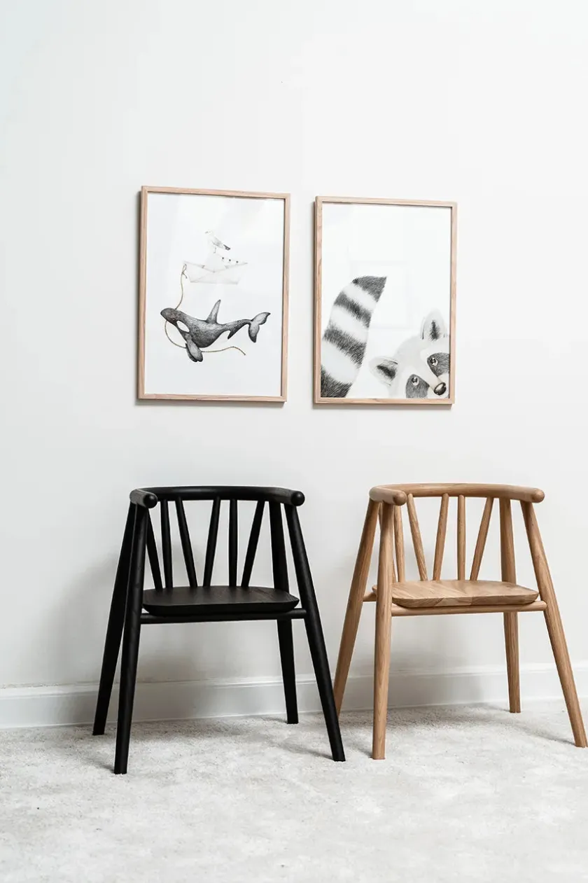Smuk og tidløs børnestol fra Oaklings, som er designet af Nina Bruun i 2021. Storm børnestol er enkel i udtrykket, og passer både til børneværelset og stuen, eller lige præcis der, hvor I har behov for en stol til jeres barn.