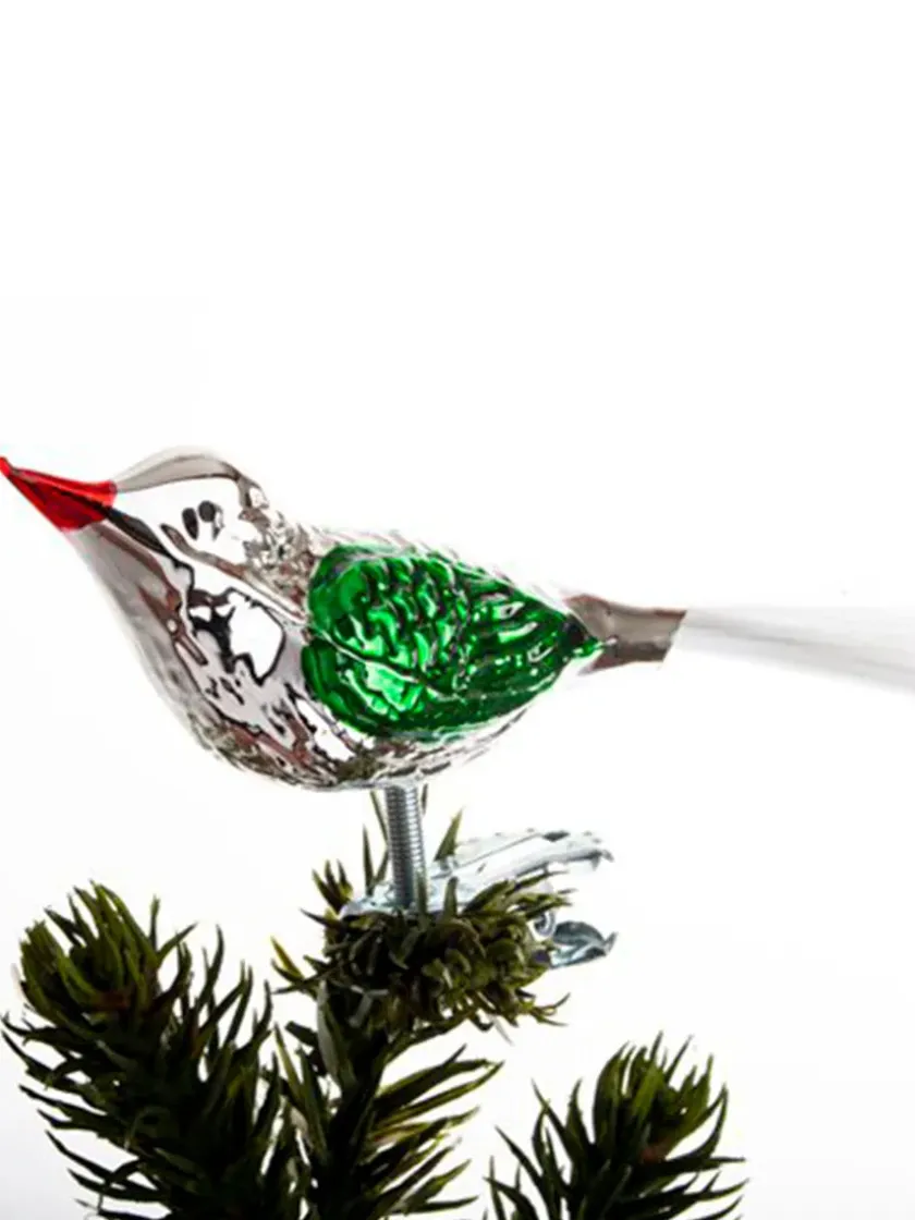 Brink Nordic Juletræspynt<Fugl m. Klemme 10 cm, sølvfarvet/pink fra