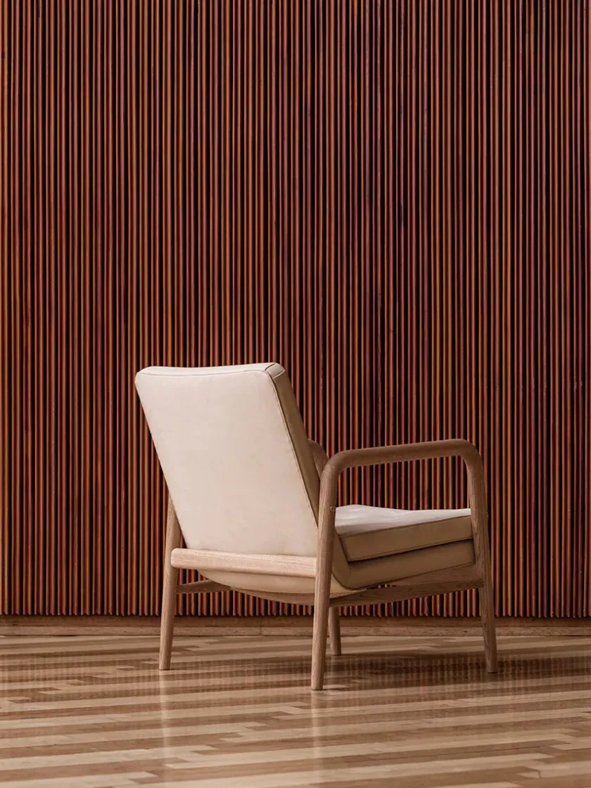 Foyer lænestolen af Vilhelm Lauritzen, produceres af Carl Hansen & Søn. Samspillet mellem træ og læder og det næsten svævende ryglæn er kendetegnet ved den smukke VLA76 stol. Foyer serien blev skabt i 1945 af Vilhelm Lauritzen til Radiohuset i København.