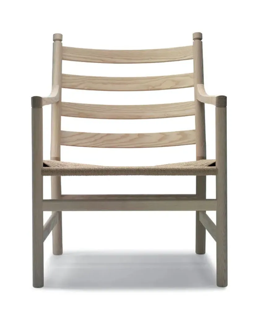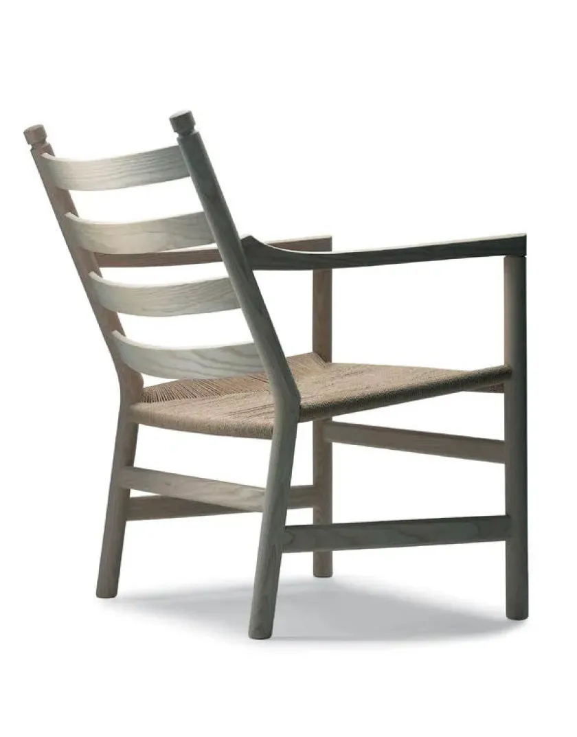 Smuk og veludført lænestol i let stil, som er meget behagelig at sidde i. Den er nem og hurtig at flytte rundt på og ideel i rum, hvor fleksibilitet og lethed er ønsket. Sædet er håndflettet af papirgarn, og fås i ubleget/natur eller sort.