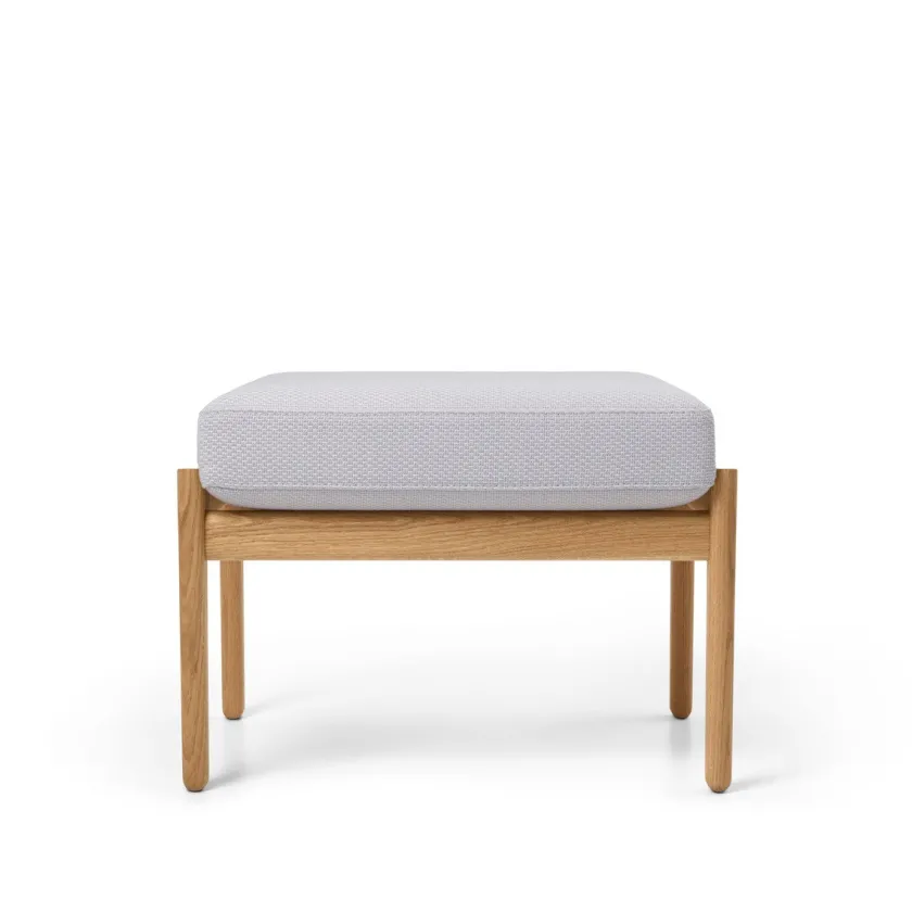 CH290F er den diskrete luksus, der fuldender din siddeplads. Wegner lod de solide egetræsrammer stå frem i al deres ærlighed, mens den polstrede hynde bløder udtrykket op og inviterer til at lægge benene højt. Den ovale form, de let hævede sider og den varme oliebehandlede eg giver et harmonisk, skandinavisk udtryk, som spiller smukt sammen med resten af CH290-serien – især loungestolene CH290 og CH291. Hynden leveres med aftageligt betræk i læder eller tekstil, så du kan opdatere look og levetid over tid. Produceret af Carl Hansen & Søn efter originale tegninger fra 1962 og forfinet af nutidigt håndværk og FSC™-certificeret træ, er CH290F skabt til rolige stunder, læsehjørnet og stuen – alene eller som perfekt makker til loungestolen.