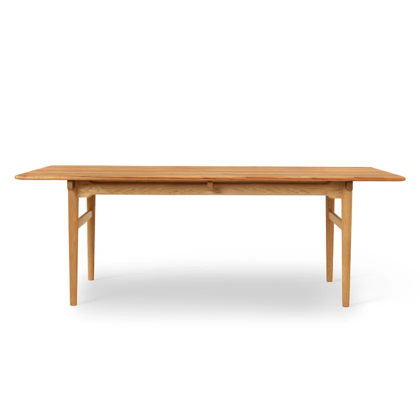 CH327 i 248 cm udgave er det ideelle valg til den store spisestue eller til dem, der ofte samler familie og venner omkring bordet. Bordpladen i olieret teak kombineret med de solide egetræsstel giver et varmt og indbydende udtryk, samtidig med at det afspejler Hans J. Wegners vision om at reducere designet til det essentielle – smukt, enkelt og funktionelt.