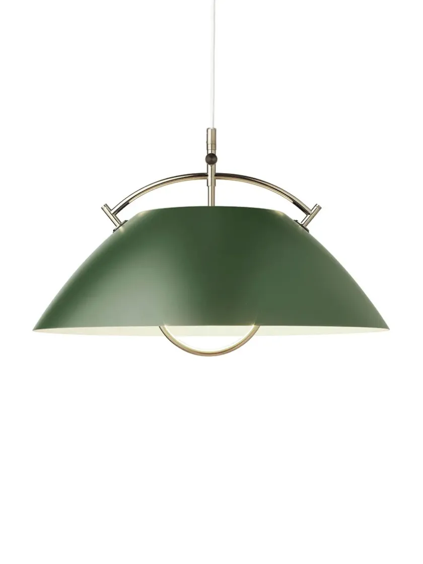 HJW37 Pendlen, også kaldet hejsependlen, er nu sat i produktion igen af Carl Hansen & Søn. HJW37 Hejsependlen blev designet i 1962 af Hans J. Wegner. Pendlen har en aluminiumsskærm med en 24-karat guld- eller forniklet bøjle, og den udsender et skønt og koncentreret lys. Hejsependlen kan fås med og uden lift/hejs – denne er uden hejs. Brug HJW37 Pendlen over spisebordet eller sofabordet.