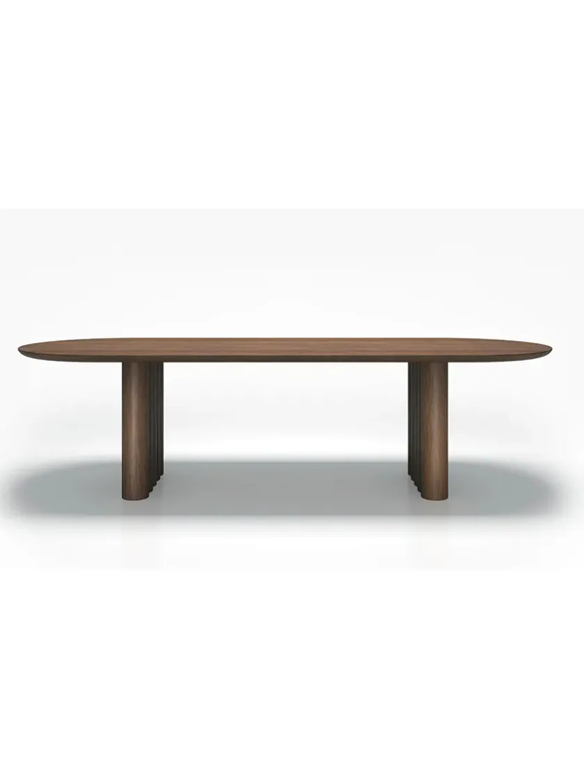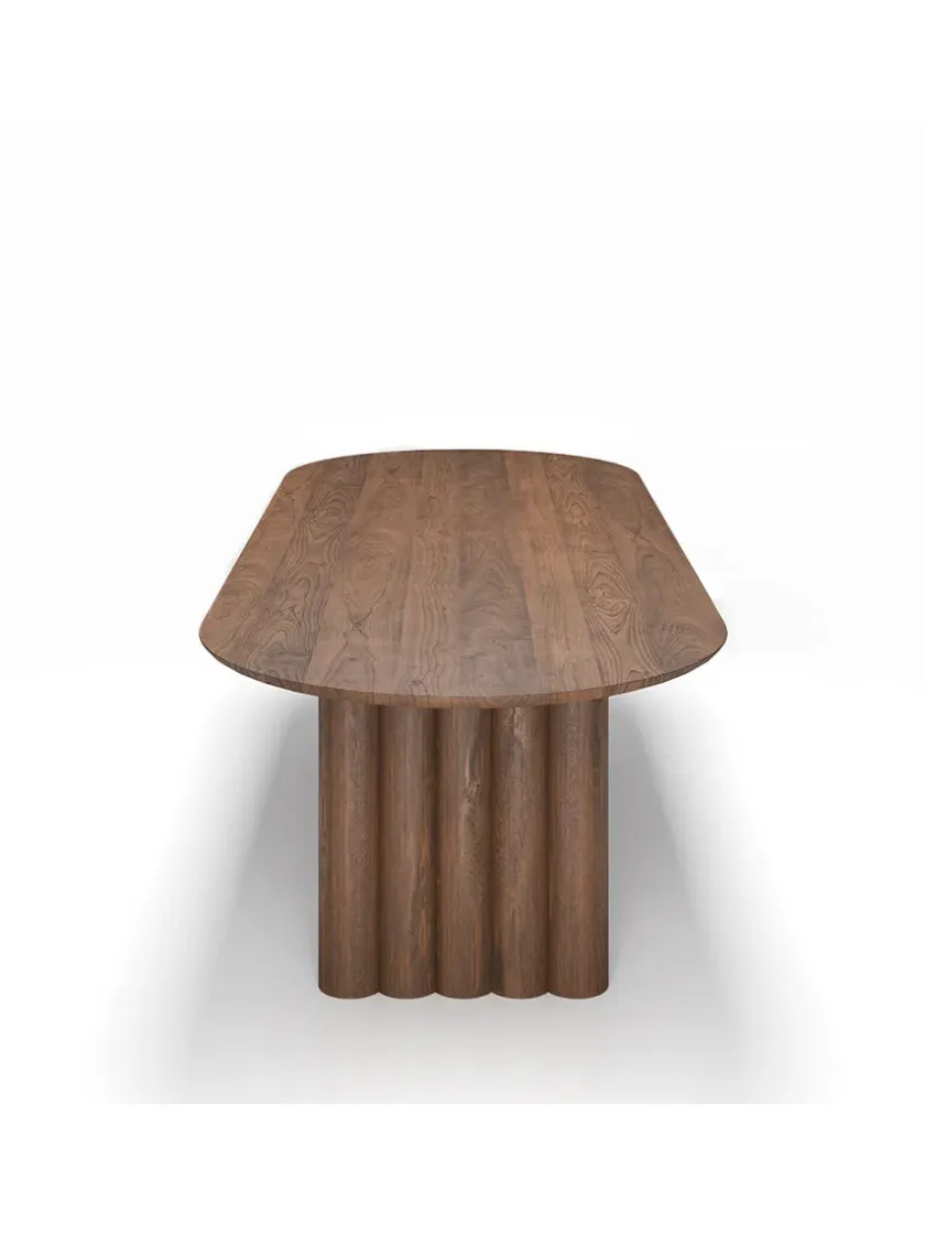 DK3s Plush Table oser af eksklusivitet og finesse. Bordet er et vaskeægte DK3 mesterværk, hvor man virkelig ser, hvor meget der bliver nørdet med detaljerne. Plush Table Oval har to store ben i massivtræ, der giver bordet masser af karakter og varme med de runde former og silhuetter. Bordet lever til fulde op til sit navn med sine bløde former, der i samspil med træets robusthed og bordpladens enkle elegance udgør en imponerende helhed.