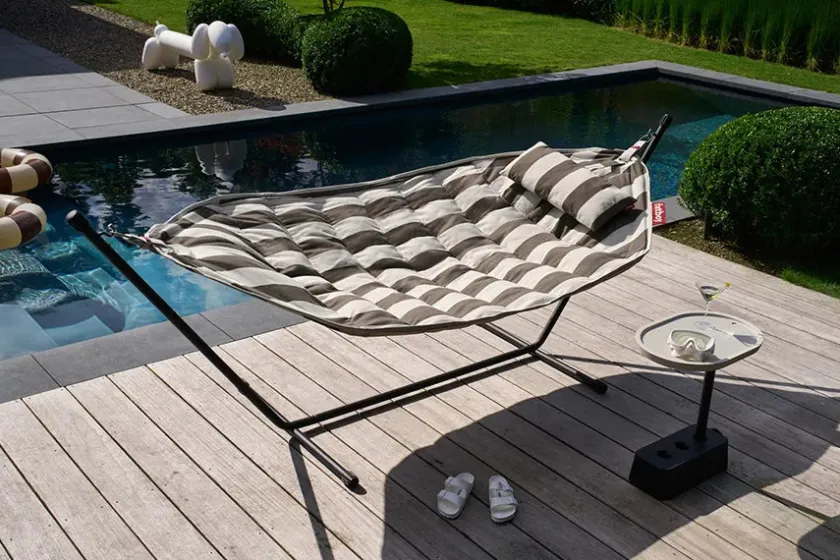 Forestil dig at læne dig tilbage i blød komfort på din egen hængekøje uden at skulle bekymre dig om træer eller støttepunkter – det giver Headdemock Superb dig mulighed for. Denne luksuriøse udendørshængekøje kombinerer elegant design og praktisk funktionalitet, så du kan nyde haven, altanen eller terrassen i total afslapning. Med robust ramme og vejrbestandigt tekstil følger en løsning, der tåler både sol og småbyger — en invitation til at opholde dig udendørs hele sæsonen.