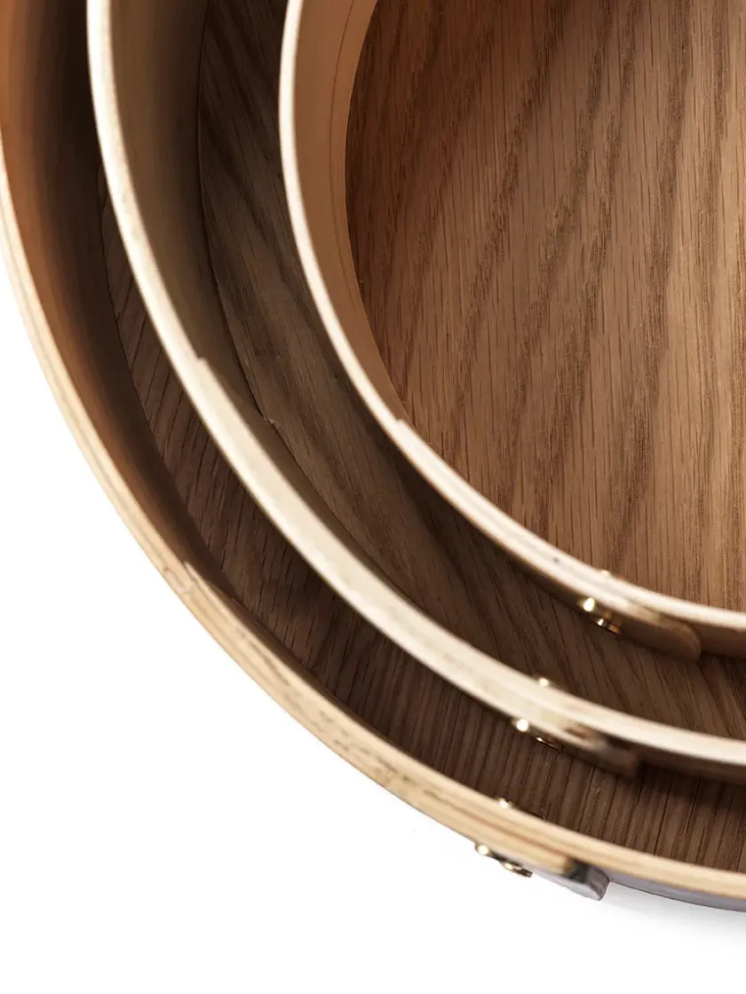 Drejø opbevaringsæskerne kommer i tre forskellige størrelser og i fire forskellige finishes.