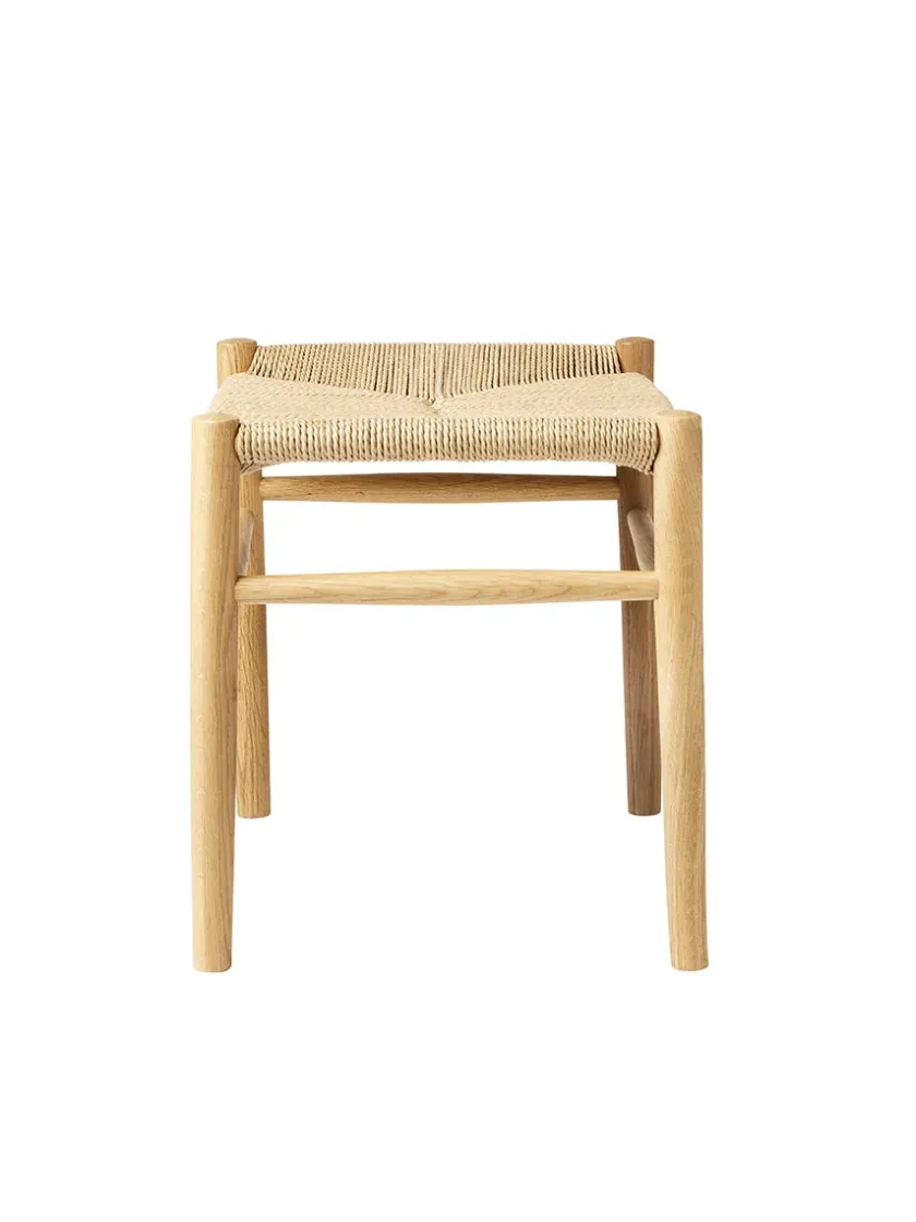 J83 skamlen er lavet i massiv eg eller malet bøgetræ med fletsæde.