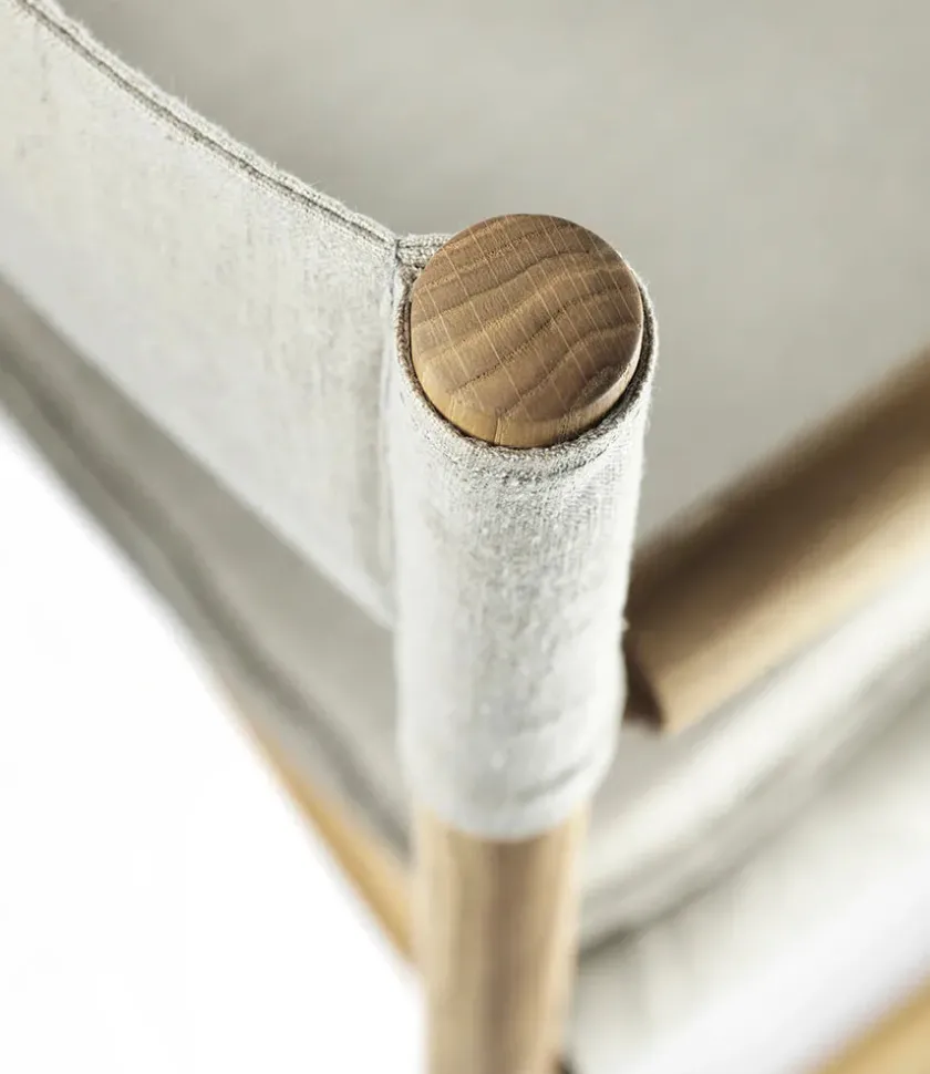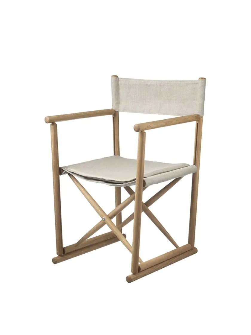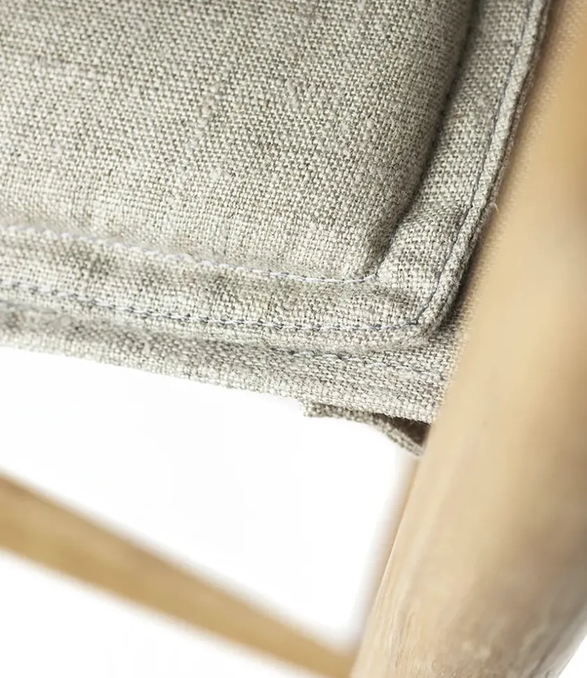 Smuk Foldestol med sæde og ryg i Oeko-tex certificeret hør. J138 foldestolen af Erik Ole Jørgensen er i massivt egetræ, så der opnås den bedst mulige holdbarhed og kvalitet.