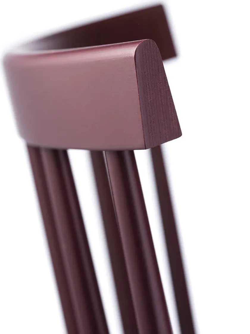 Stolen er genkendelig på den v-formede ryg og er særlig populær i Danmark fordi den er behagelig og komfortabel til store og små og samtidig ikke fylder alverden.