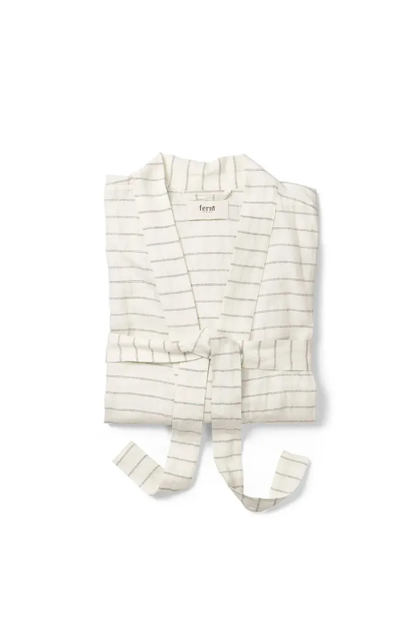 Field Robe er en lækker morgenkåbe. Den japansk inspirerede kåbe kan bruges af både mænd og kvinder. Der er intet bedre ned at pakke sig ind i en behagelig morgenkåbe på de rolige morgener. Kåben kan med dine sideslidser og matchende bælte også fungere som en stilfuld let jakke i de varme sommermåneder. Field Robe kommer også i følgende smukke farver: Chocolate/bright blue Olive/bright blue Materiale: 50% bomuld og 50% hør Vask: 30°C skånevask Farve: Off-white/chocolate Størrelse: One size Mål: B 140 x H 120 cm