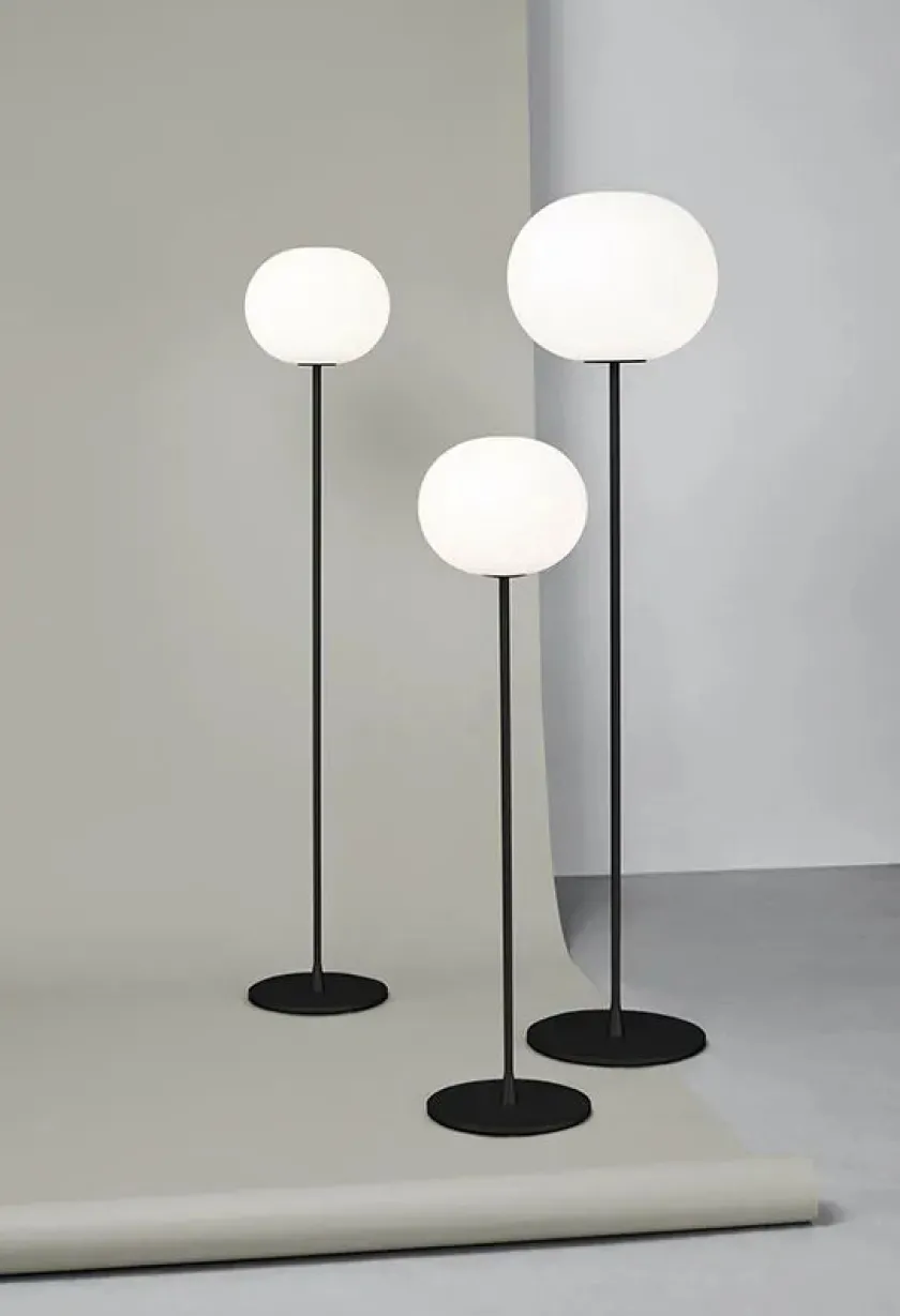 Glo-Ball gulvlampen er en opal glaslampe med en sort base. Lampen er velegnet til åbne miljøer. Materiale: Glas Mål/vægt: F1: Ø: 330 x H: 1350 mm – 12kg F2: Ø: 330 x H: 1750 mm – 12,5kg F3: Ø: 450 x H: 1850 mm – 18,9kg Designet af: Jasper Morrison