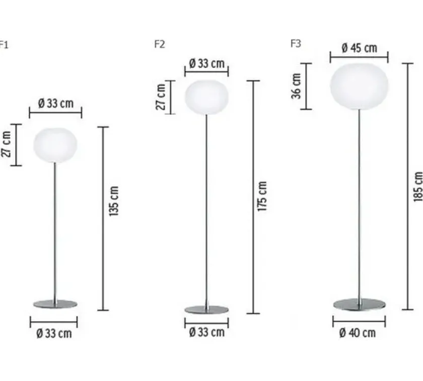 Glo-Ball gulvlampen er en opal glaslampe med en base i mat aluminium. Lampen er velegnet til åbne miljøer. Materiale: Glas Mål/vægt: F1: Ø: 330 x H: 1350 mm – 12kg F2: Ø: 330 x H: 1750 mm – 12,5kg F3: Ø: 450 x H: 1850 mm – 18,9kg Designet af: Jasper Morrison