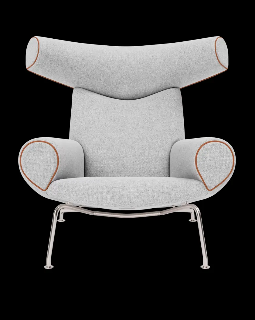 Wegners ikoniske Ox Chair fra 1960 er en sand designklassiker, der forener skulpturel styrke med afslappet elegance. Stolen er et statement piece, der udstråler personlighed og karakter – lige så markant i en moderne penthouse som i et klassisk hjem. I denne udgave får du en eksklusiv kombination af grå Hallingdal 116 uldstof og kantafslutning i Max 95 cognacfarvet læder, der tilfører varme og raffinement. Det børstede rustfri stålstel giver stolen et let, men robust udtryk, som smukt kontrasterer den voluminøse polstring. Hver Ox Chair fremstilles i Danmark af Fredericia Furniture med den håndværksmæssige præcision og kvalitet, som Wegner krævede af sit arbejde. Et møbel skabt til at blive elsket, beundret og arvet.