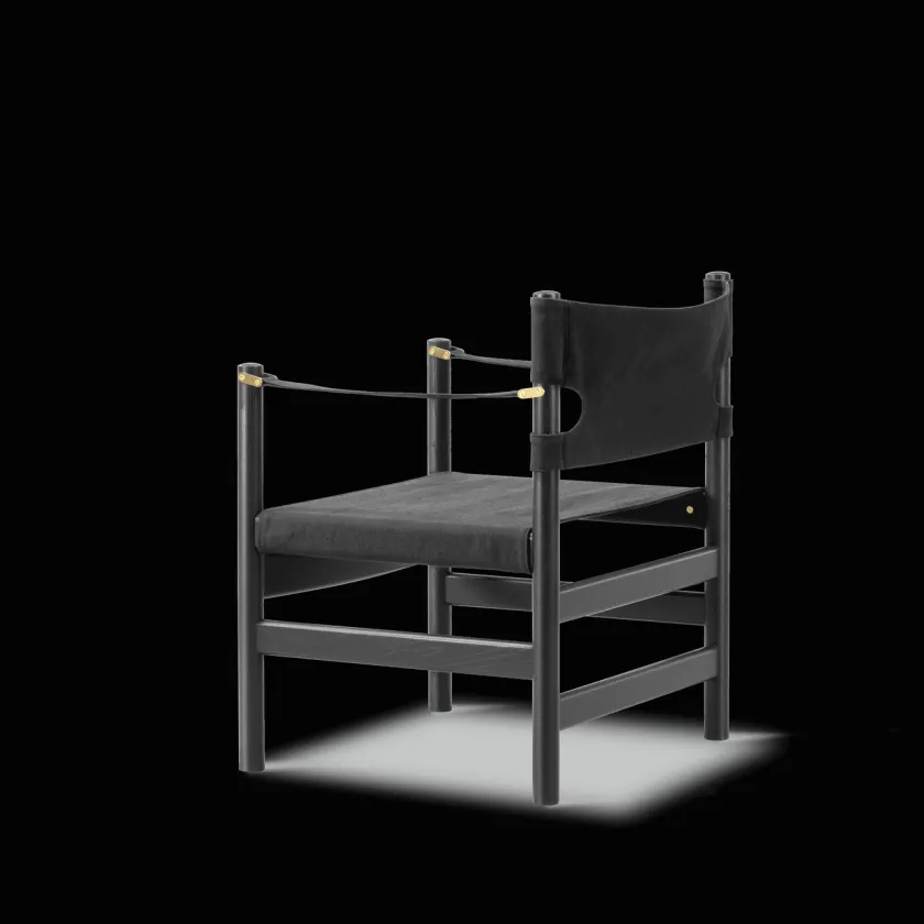 Canvas 21 forener klassisk elegance med afslappet ro. Tegnet af Børge Mogensen i 1968 og opbygget som en enkel, ærlig konstruktion, der tydeligt afspejler Mogensens præcise proportioner. Stolen er i FSC-certificeret massiv eg, sæbebehandlet for et lyst og naturligt udtryk, kombineret med naturfarvet canvas i sæde og ryg samt beslag i massiv messing – materialer, der udvikler en sofistikeret patina over tid. En alsidig loungeklassiker, hvis rene linjer harmonerer med ethvert rum.