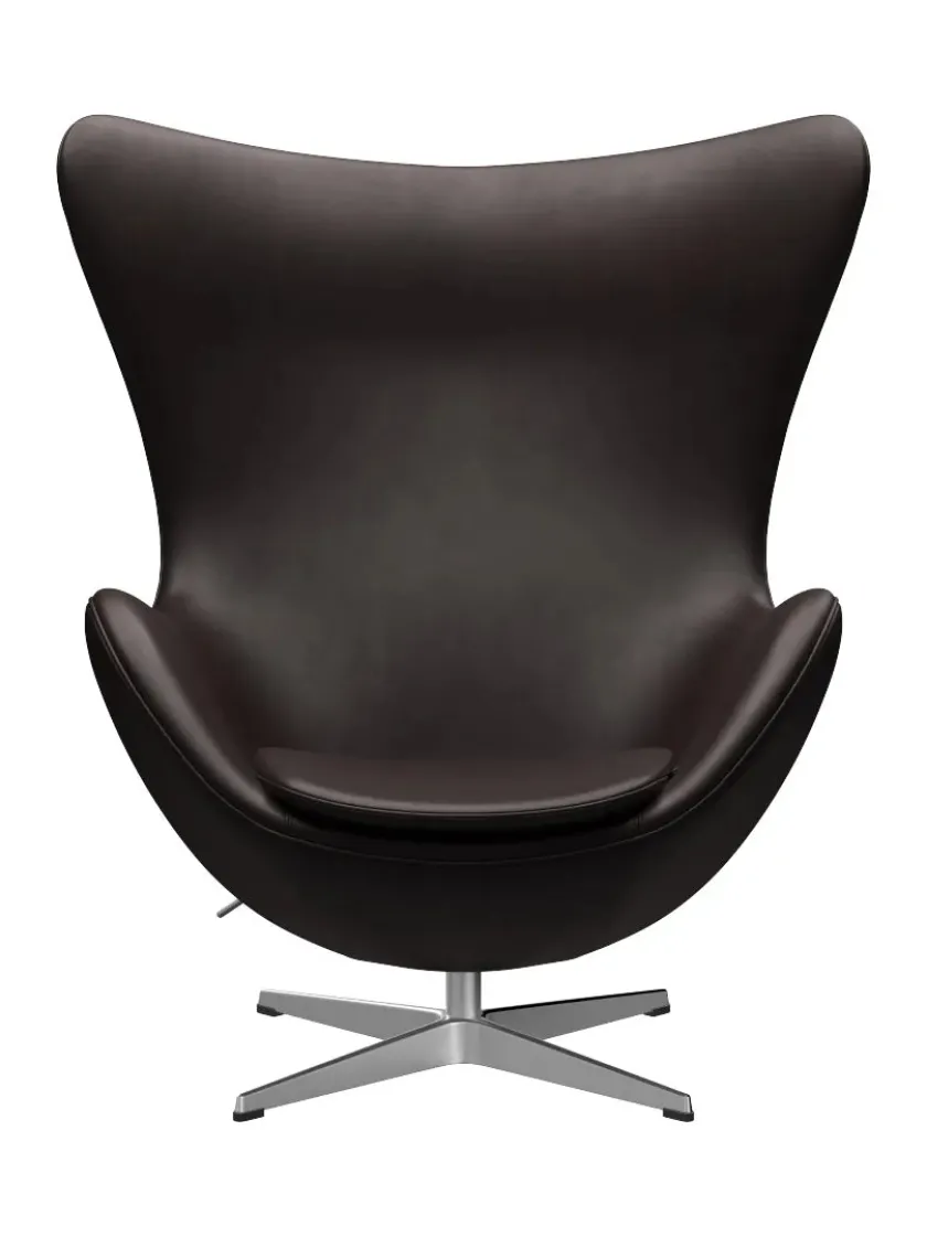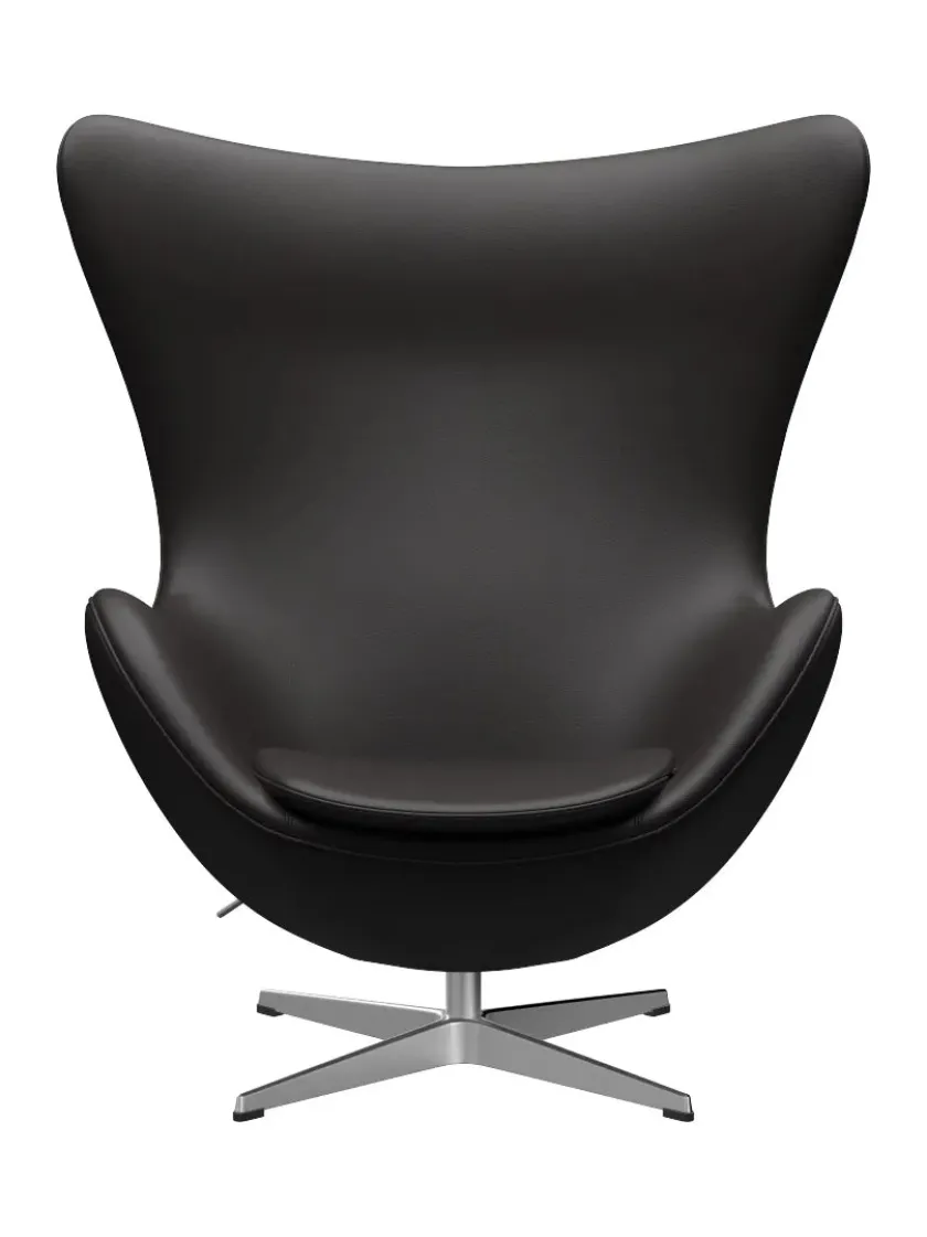 Fritz Hansen Lænestole<Ægget, sort læder/aluminium af Arne Jacobsen