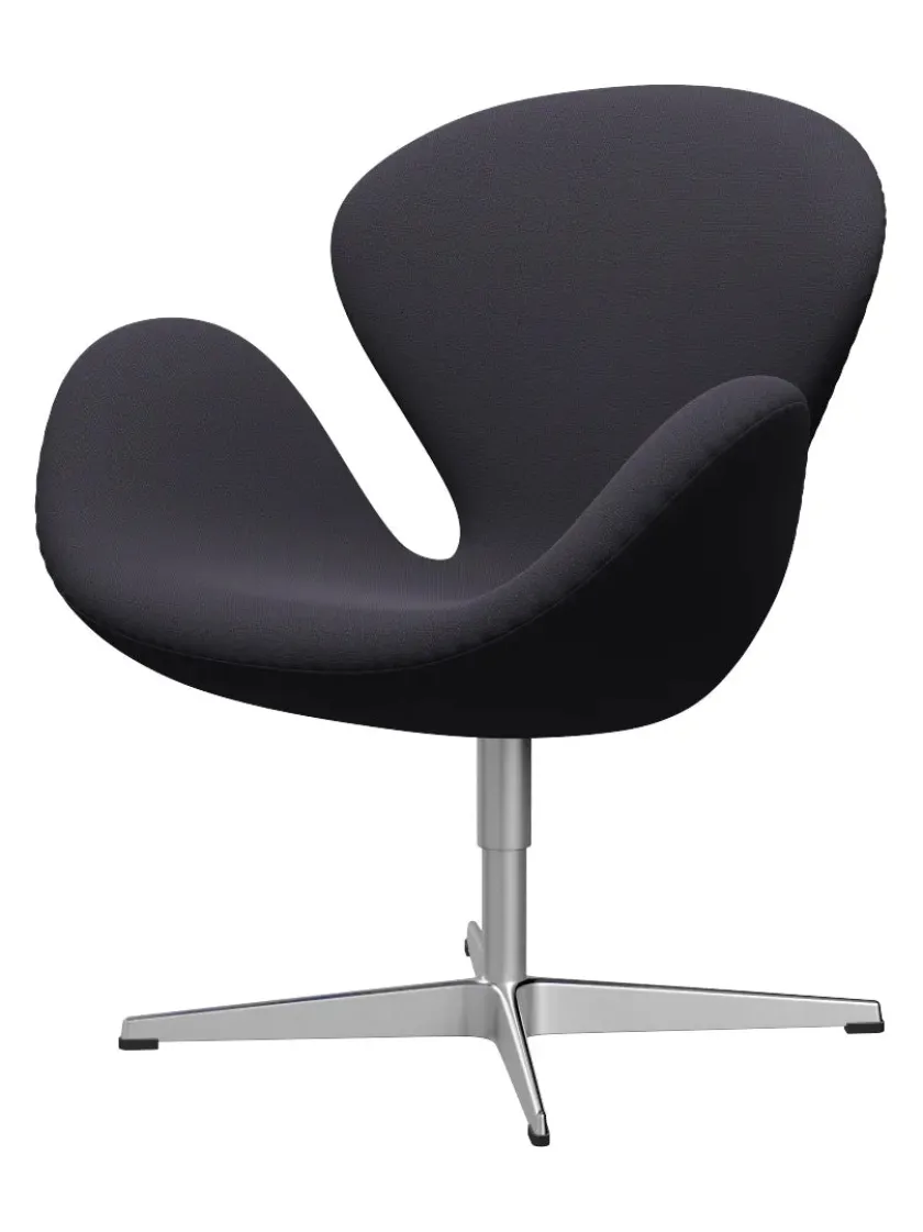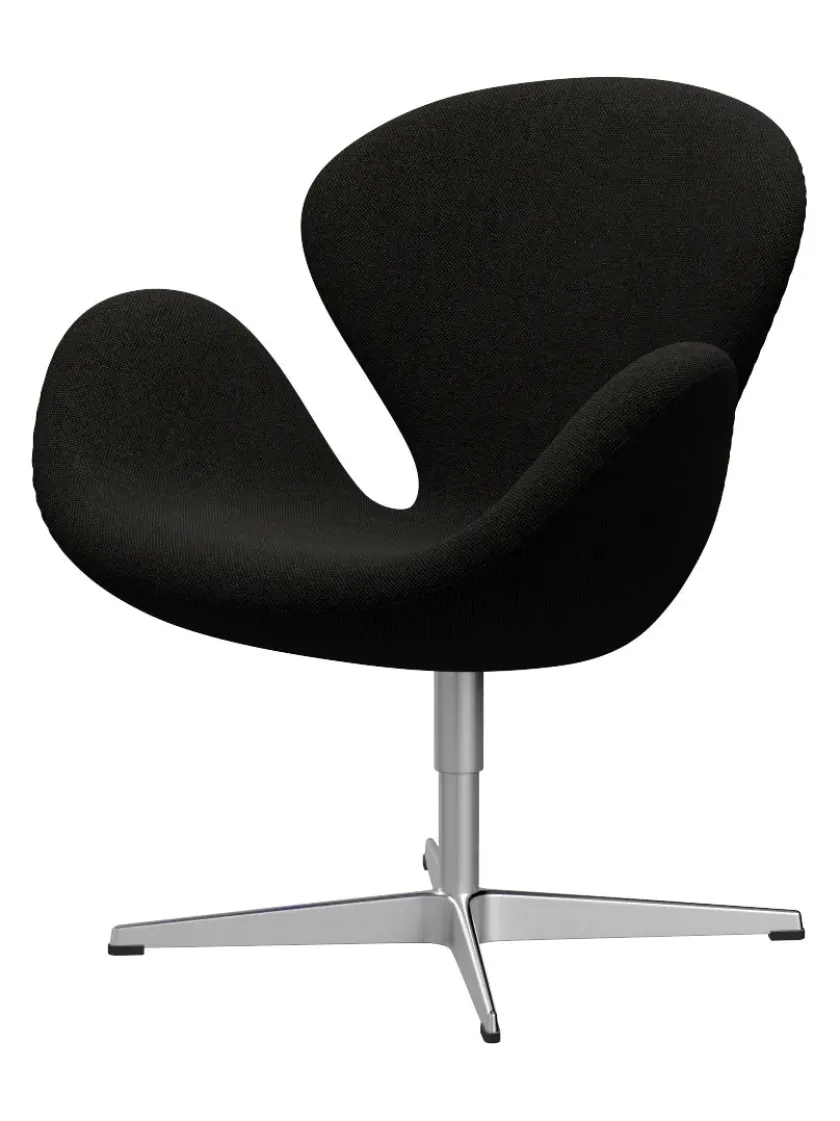 Svanen med sort Essential læder og stel i børstet aluminium. 3320 Svanen fra Fritz Hansen er designet af Arne Jacobsen.