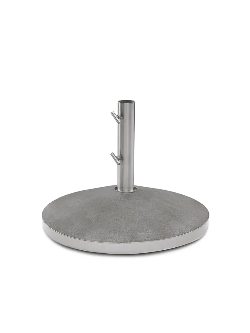 Denne Skagerak Capri parasolfod fra Fritz Hansen på 30 kg. Capri parasolfoden er fremstillet af beton og er kegleformet, så regnvandet altid vil løbe af automatisk. Stålrammen har bløde, afrundede kanter, så den ikke ridser når foden flyttes rundt, og så den er rar og blød at røre ved. Capri parasolfoden er med stålrør med diametre på 4 centimeter.