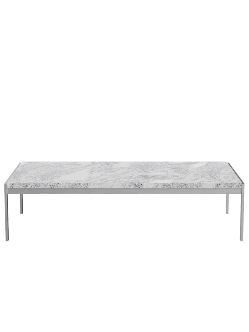 PK63A sofabord af Poul Kjærholm er et klassisk Poul Kjærholm design. De kolde materialer i et stringent design, hvor alt overflødigt er udeladt. PK63A™ fås med fire forskellige bordplader: skiffer, marmor, fauske marmor og granit. Stellet til bordet er lavet af satinbørstet rustfrit stål. Design: Poul Kjærholm, 1968 Mål: L 120 x B 60 x H 31 cm