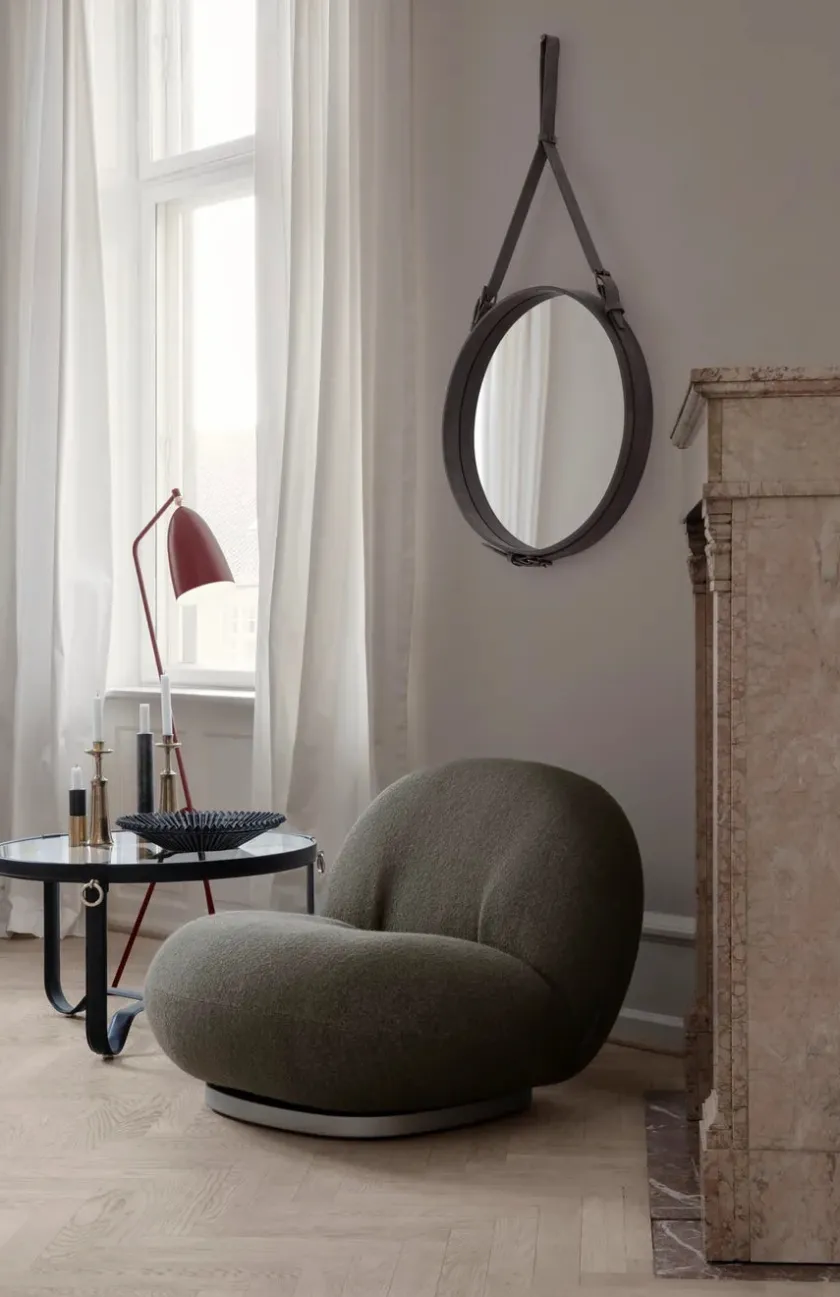 Det altid populære GUBI spejl kommer her på tilbud i en special variant. Adnet spejlet fra GUBI har en diameter på Ø58 cm og ses her med Alcantara læder i farven Smoked Pearl til en fantastik pris. Et ideelt spejl til entréen, soveværelset, badeværelset eller stuen, hvor spejlet vil giver et smukt udtryk. Adnet Wall Mirror Circular Ø58 er designet af Jacques Adnet, udviklede tilbage i 1950 en kollektion til et fransk modehus med diskrete og voluminøse læderbetrukkede møbler og boligtilbehør. Adnet var en innovativ designer og var bland de første til at kombinere læder med glas.
