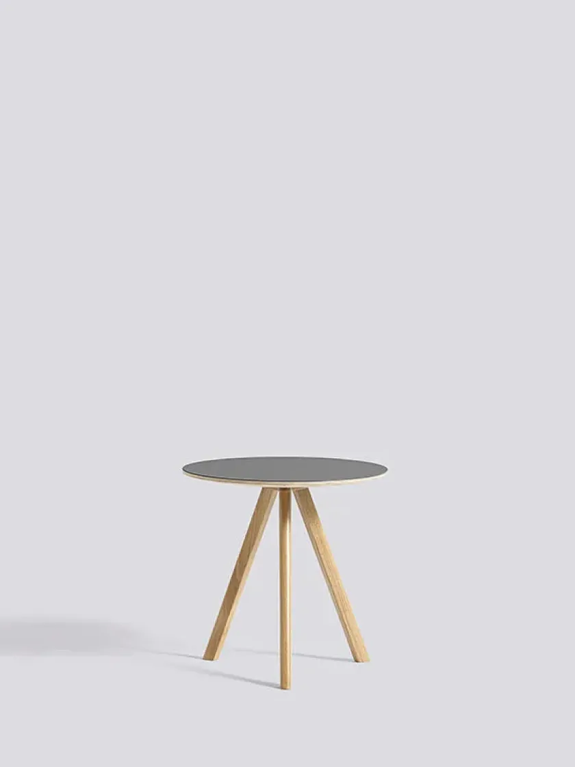Copenhague CPH20 bord Ø50 fra Hay Designet af: Ronan & Erwan Bouroullec Mål: Ø 50 x H 49 cm Materiale: Lakeret eg (vandbaseret lak) Sortbejdset eg (vandbaseret lak) Bordplade: 18mm krydsfiner med egefiner, laminat eller linoleum. Farver: Sort Grå Grøn Off white Billedet kan afvige fra den valgte variant
