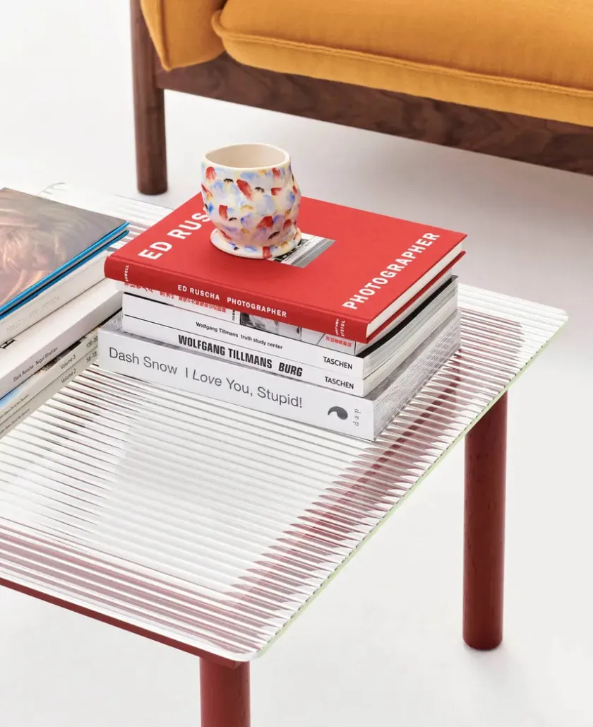 Kofi sofabordet fra HAY er designet af Martin Solem og denne variant måler 80 x 80 cm. Bordet laves med et stel i egetræ eller valnød. Bordplader: – Clear glass – Clear reeded glass Mål: Længde: 80 cm Bredde: 80 cm Højde: 36 cm