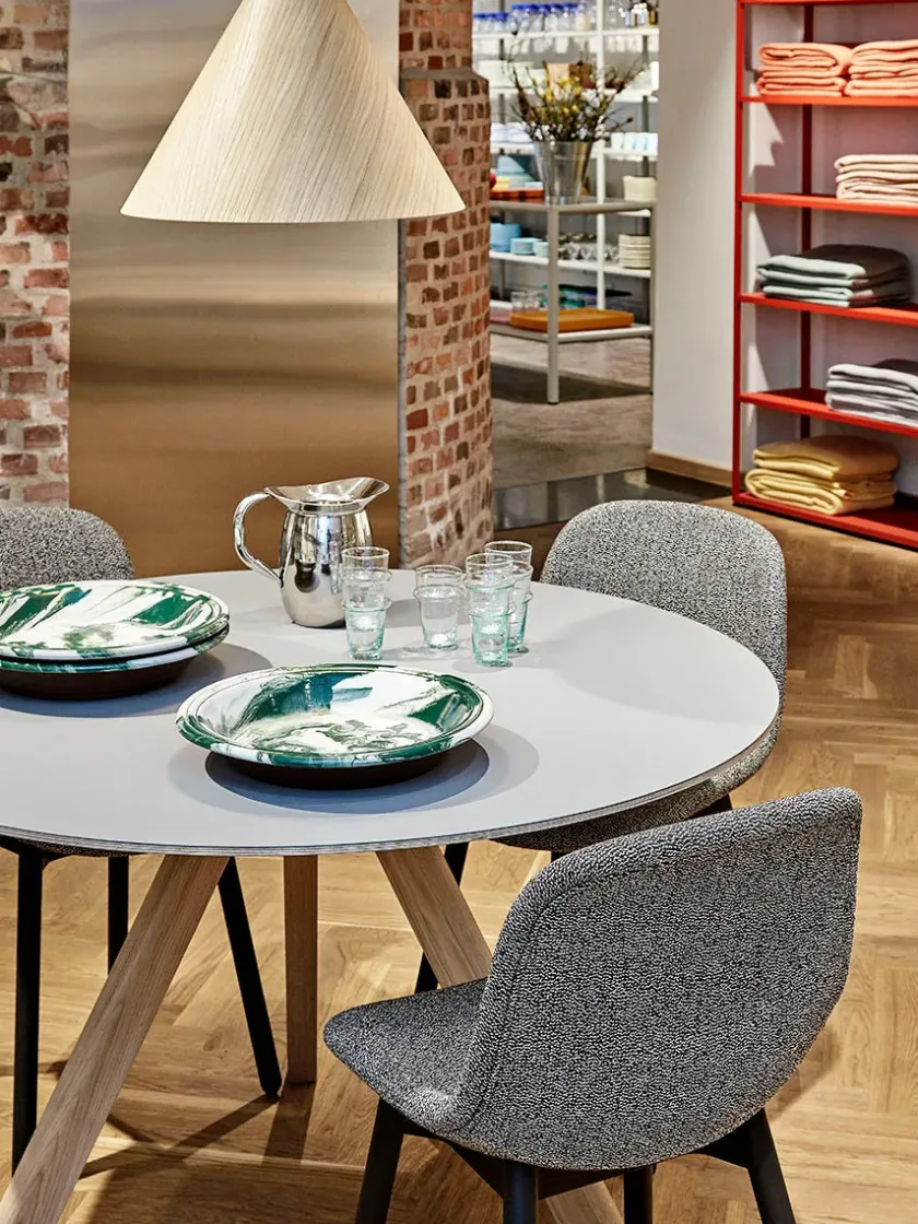 Copenhague CPH20 bord Ø120 fra Hay Designet af: Ronan & Erwan Bouroullec Mål: Ø: 120 x H: 74 cm Materiale: Lakeret eg (vandbaseret lak) Sortbejdset eg (vandbaseret lak) Lakeret valnød (vandbaseret lak) Bordplade: 18mm krydsfiner med egefiner, laminat eller linoleum. Billedet kan afvige fra den valgte variant.