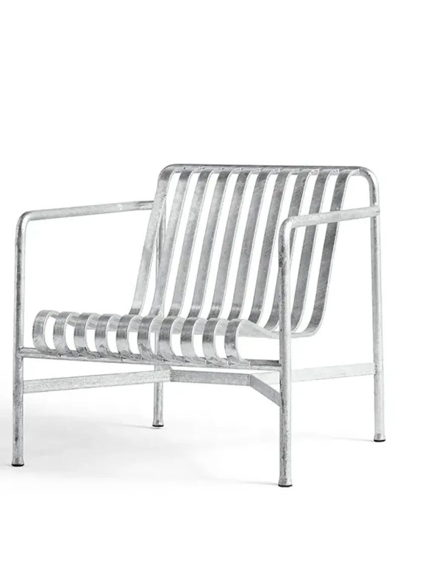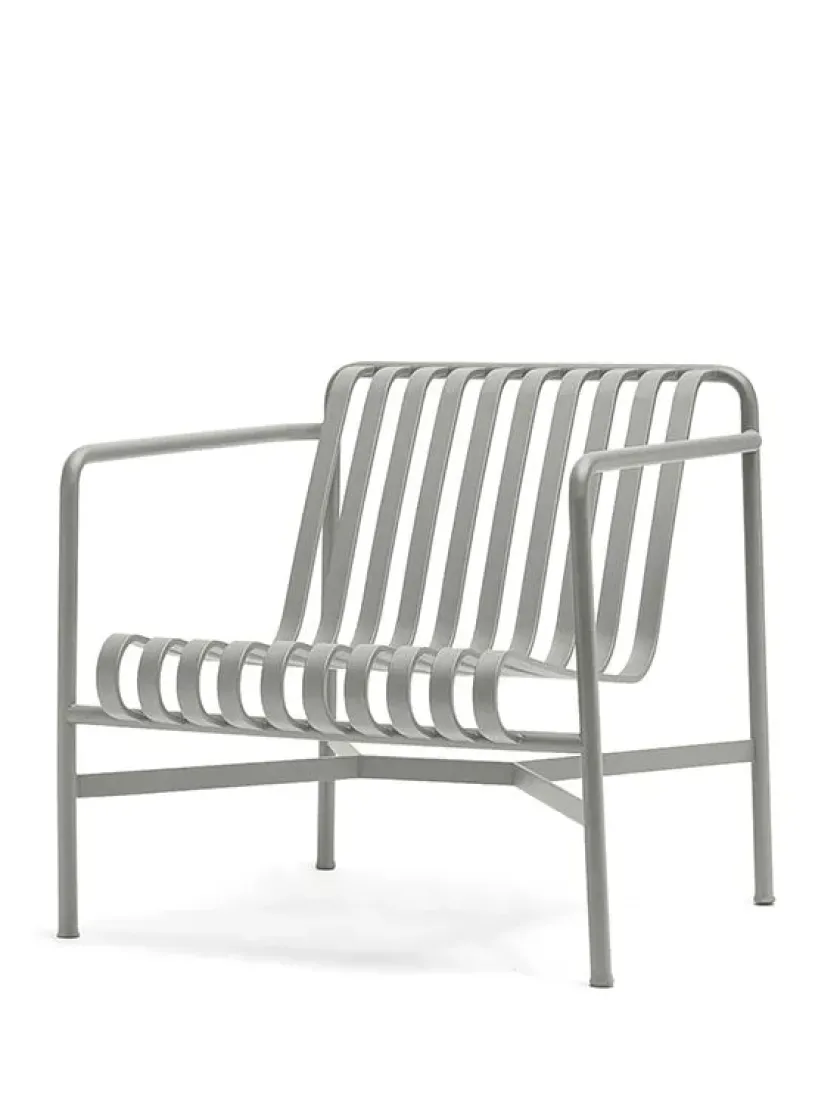 Palissade Lounge Chair Low fra HAY er en loungestol, der kombinerer minimalistisk skønhed med en behagelig, afslappet siddeoplevelse. Designet af de franske brødre Ronan og Erwan Bouroullec, er stolen en del af den ikoniske Palissade-serie, der er skabt til at smelte naturligt ind i både urbane og naturskønne omgivelser. Med sin lave, tilbagelænede profil og de bløde, buede linjer giver Palissade Lounge Chair Low en afslappet atmosfære, perfekt til at nyde lange sommerdage i haven, på terrassen eller altanen. Konstruktionen i pulverlakeret eller varmgalvaniseret stål gør stolen ekstremt slidstærk og vejrbestandig, så den tåler alt fra solskin til regn og frost uden at miste sin styrke eller elegance. De karakteristiske parallelle lameller i stålkonstruktionen skaber en lethed i designet, samtidig med at de sørger for, at regnvand ikke samler sig på sædet. Stolen fås i flere tidløse farver som olivengrøn, antracit, lysegrå, rød og creme, hvilket gør det let at matche den med andre møbler fra Palissade-serien eller forskellige udendørs indretninger.